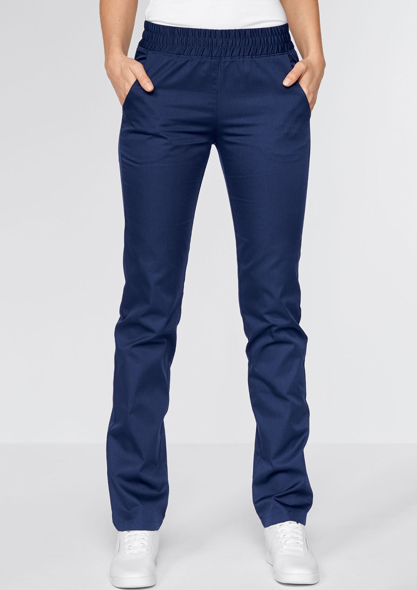 Choose the NAPOLI easy-to-wear trousers, combining a relaxed fit and elastic waistband for all-day comfort, with a clean design and easy-care fabric—perfect for everyday professional use.