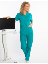 This medical set is composed of a unisex medical coat with 2 pockets and unisex medical pants with elastic.