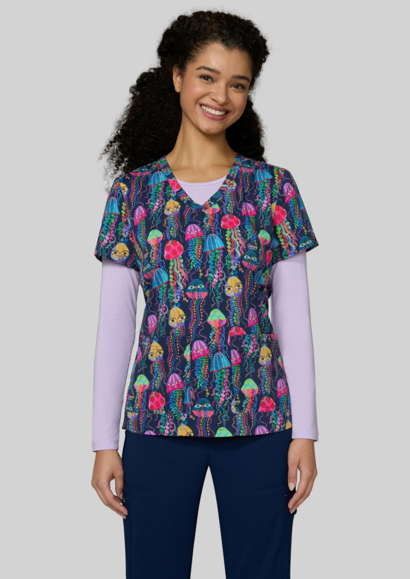 Released Released! Is that refrain already thinking in your head? Your patients will be amused to see you wearing this blouse printed under the sign of Elsa, the Snow Queen! Maybe they'll sing too when they see you!