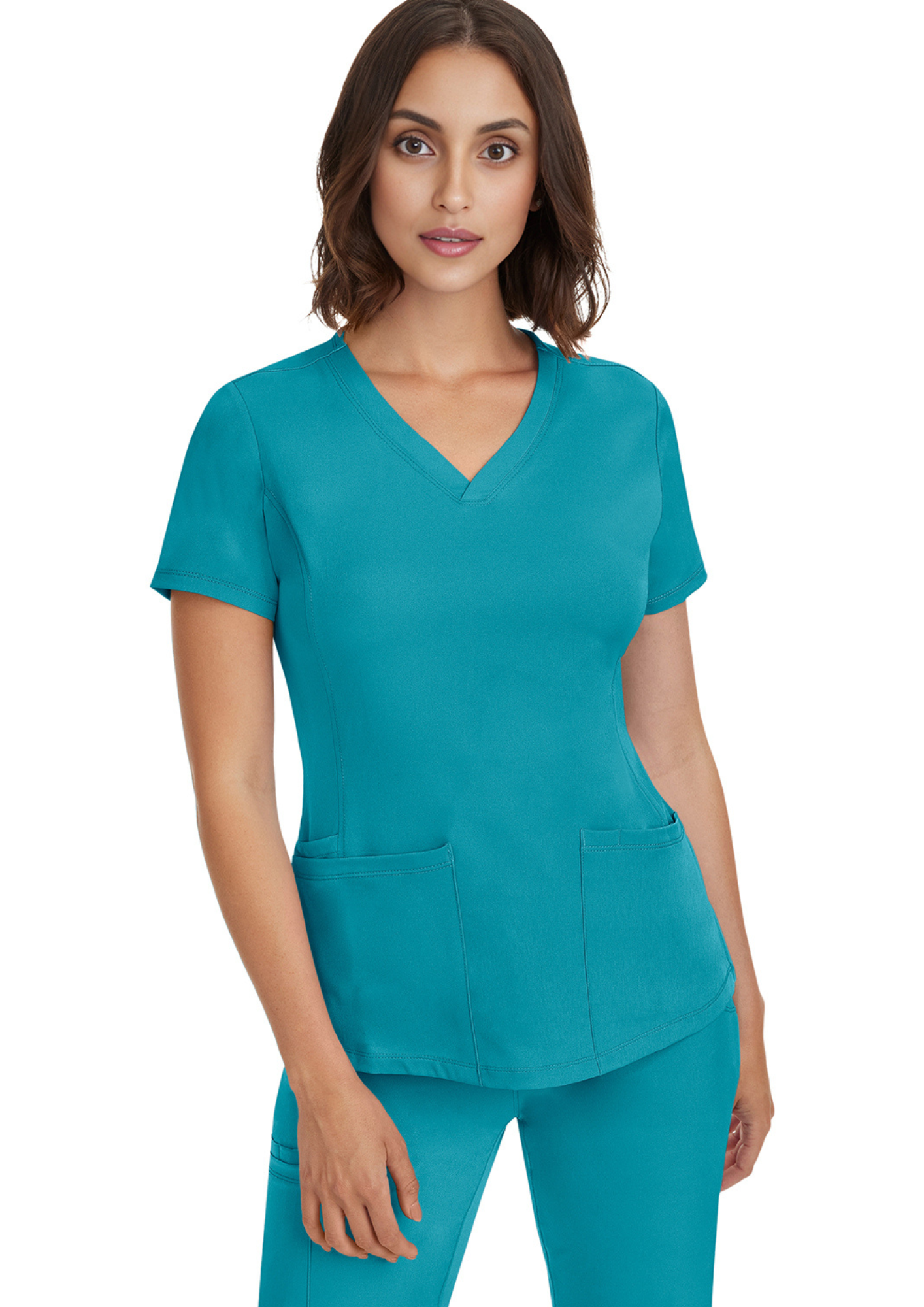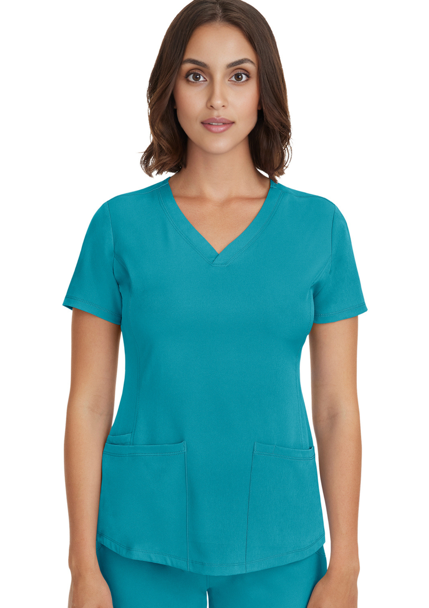 Combine absolute comfort, elegance, and performance with this medical scrub top designed to support you through your most active days. Made from an ultra-soft, lightweight, and stretchy fabric, it offers excellent breathability and effectively wicks away moisture to keep you cool and comfortable all day long. Its modern V-neck adds a touch of elegance, while the front princess seams and tailored fit enhance the silhouette without restricting movement. Practical and functional, it features 4 spacious pockets and a media pocket to keep your essentials within easy reach, along with side slits that ensure optimal mobility. Easy to care for and built to last, this medical scrub top strikes the perfect balance between style, comfort, and efficiency, helping you feel confident and comfortable at work every day.