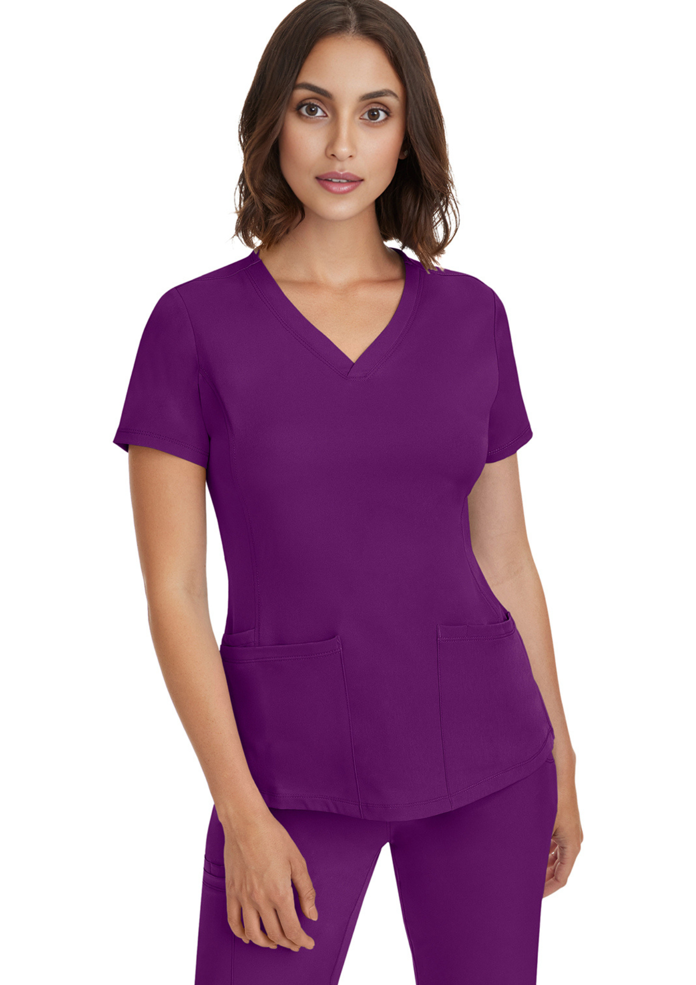 Combine absolute comfort, elegance, and performance with this medical scrub top designed to support you through your most active days. Made from an ultra-soft, lightweight, and stretchy fabric, it offers excellent breathability and effectively wicks away moisture to keep you cool and comfortable all day long. Its modern V-neck adds a touch of elegance, while the front princess seams and tailored fit enhance the silhouette without restricting movement. Practical and functional, it features 4 spacious pockets and a media pocket to keep your essentials within easy reach, along with side slits that ensure optimal mobility. Easy to care for and built to last, this medical scrub top strikes the perfect balance between style, comfort, and efficiency, helping you feel confident and comfortable at work every day.