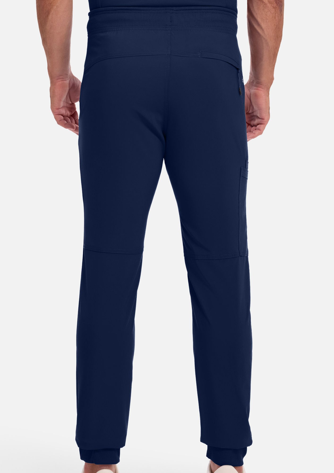 This men’s jogger-style medical pant is designed for those who want the perfect balance of comfort, functionality, and modern style. Its jogger fit delivers a dynamic, contemporary look, while the soft ribbed waistband and adjustable drawstring ensure a comfortable, customized fit all day long. The faux fly adds a polished finish without compromising freedom of movement. Highly practical, it features five smartly designed pockets: two front pockets, a double right-side cargo pocket with a pen compartment, and a zippered back pocket for added security. Made with innovative fabric technologies, it offers ultra-stretch performance, antimicrobial protection, and an ultra-soft feel for exceptional comfort. A modern medical pant that keeps you moving with confidence, comfort, and style—shift after shift