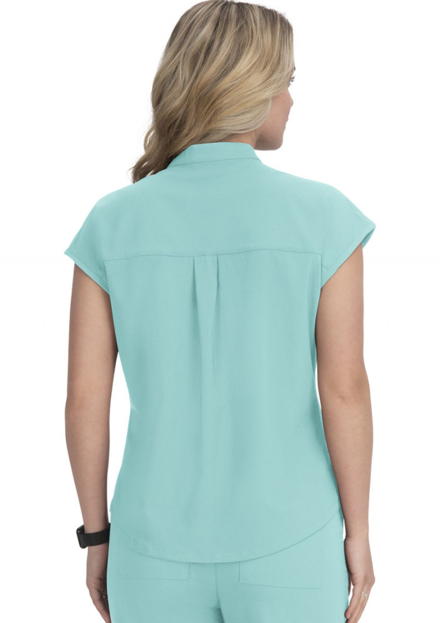 The blouse with a split neckline from "KOI", fitted, with its multiple details, is suitable for all medical professions.