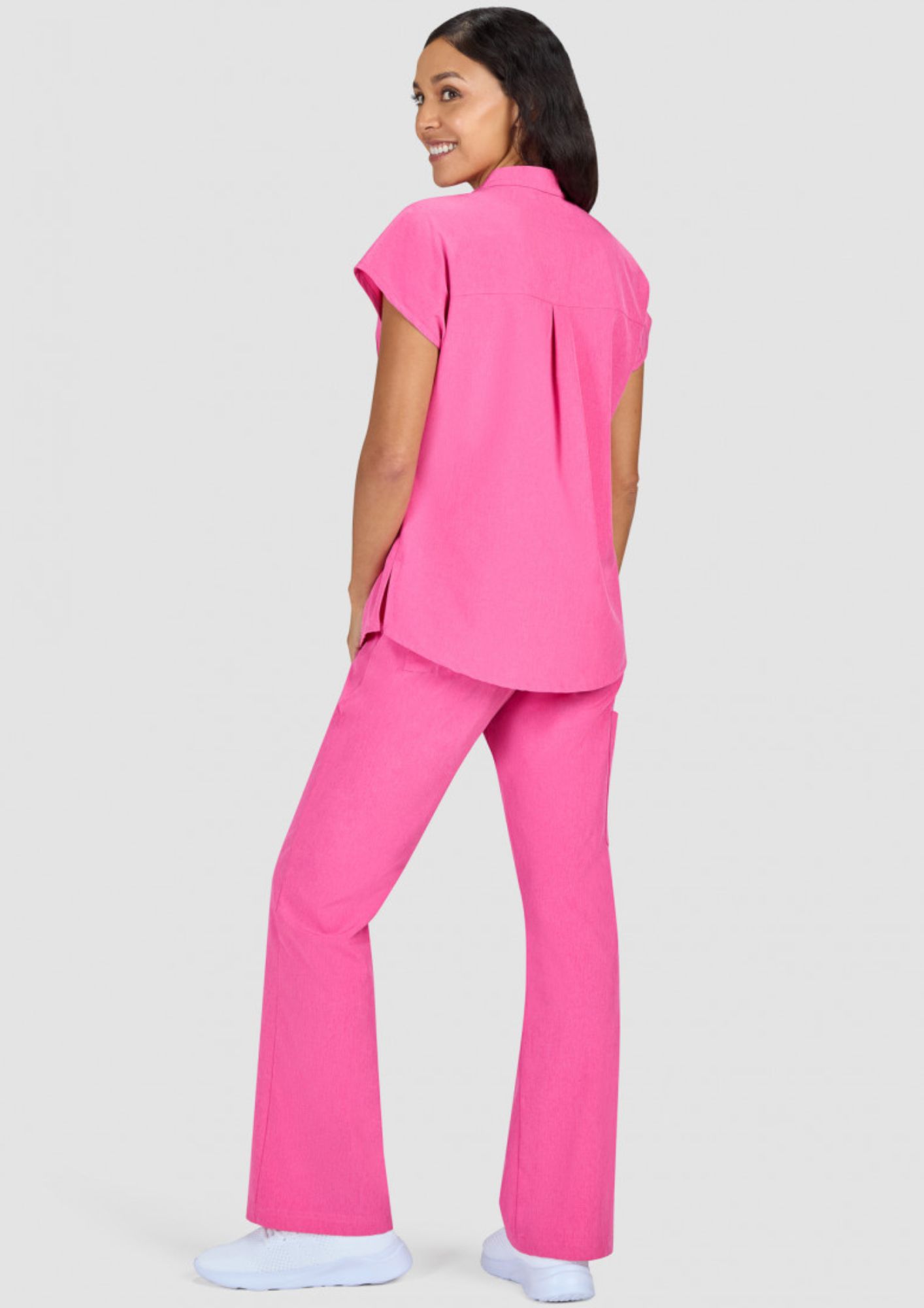 The blouse with a split neckline from "KOI", fitted, with its multiple details, is suitable for all medical professions.