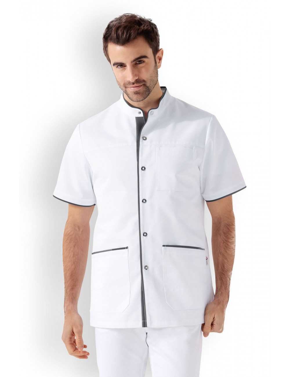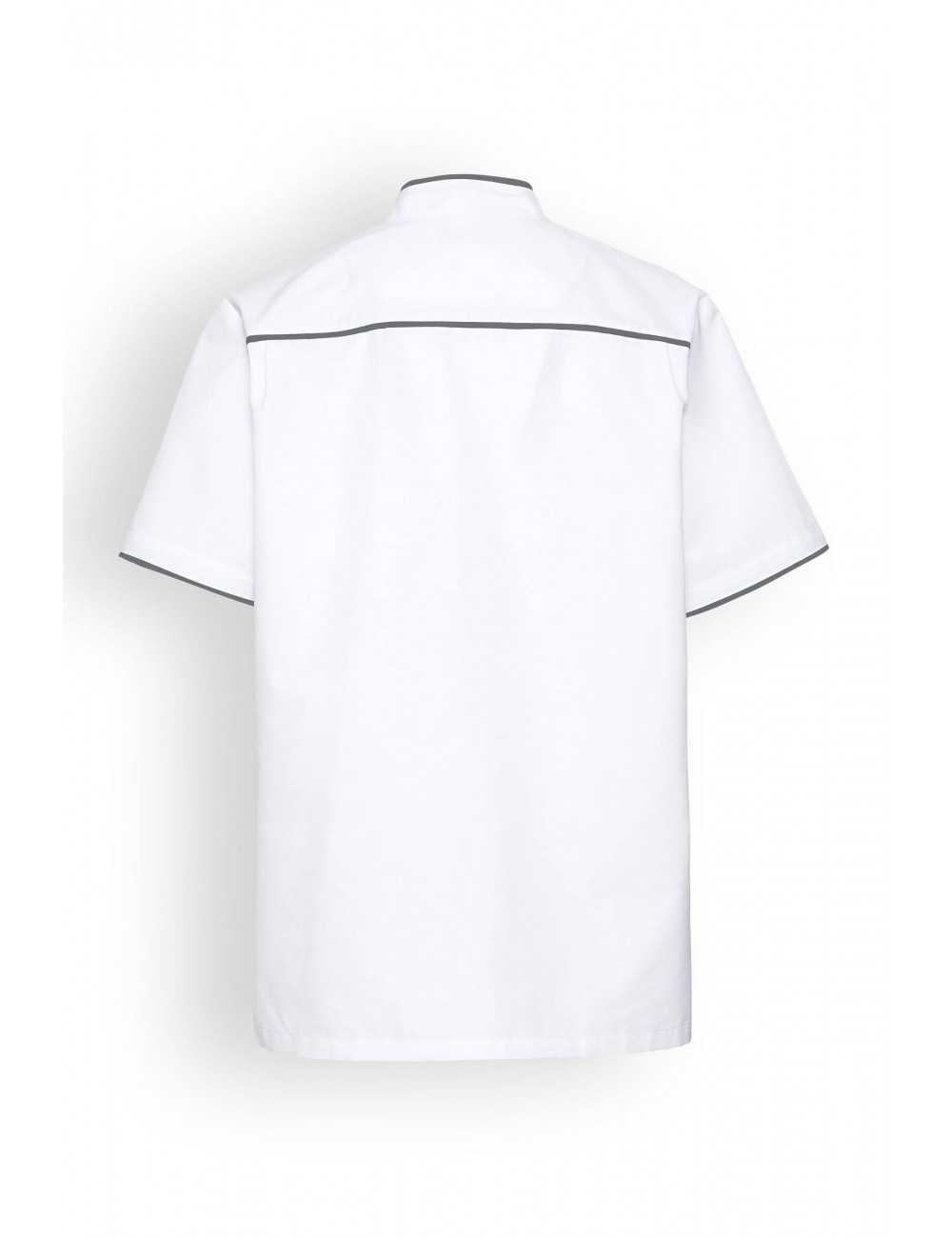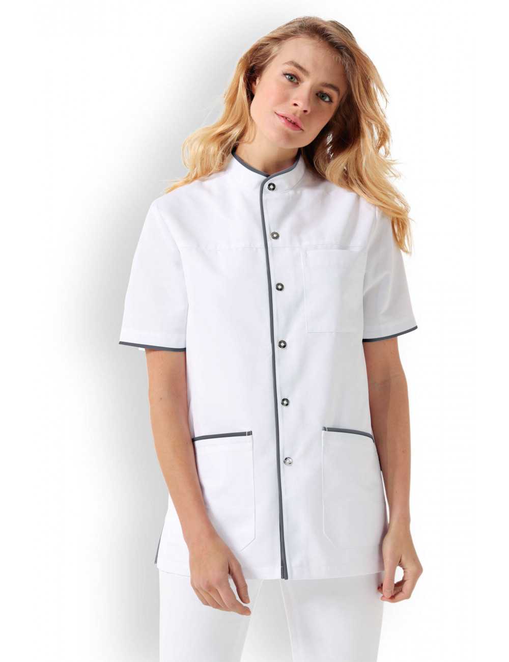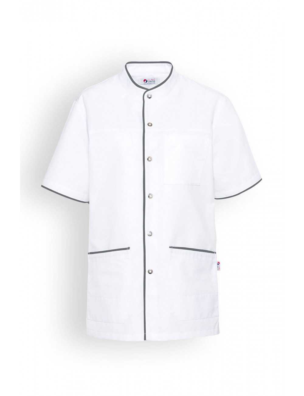 Unisex blouse, straight collar, snap closure.