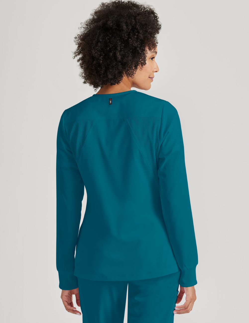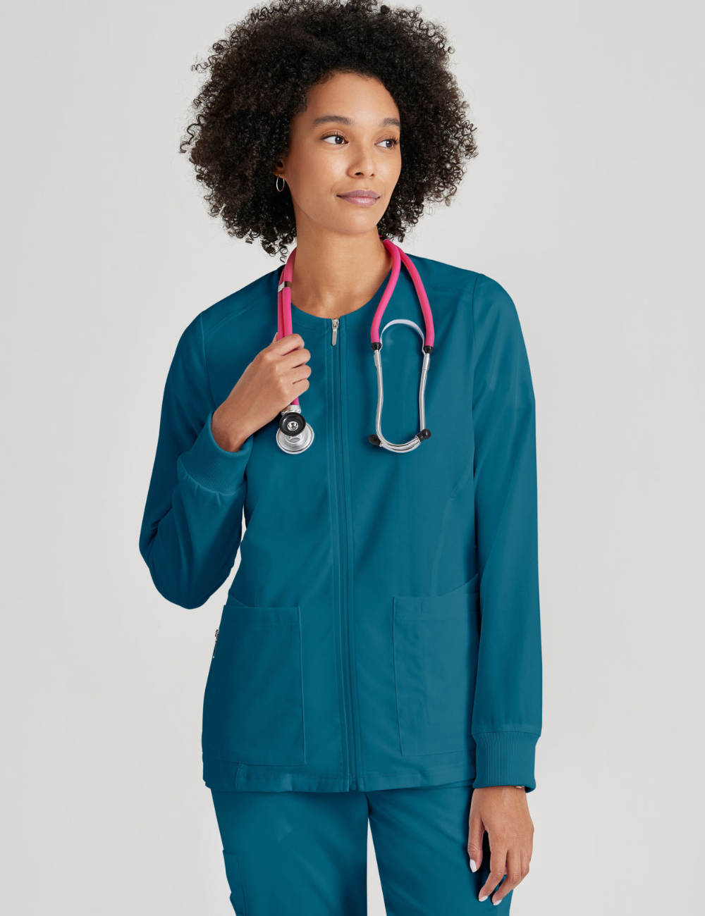 A round neck, straight medical jacket with multiple details, which is suitable for all medical professions.
