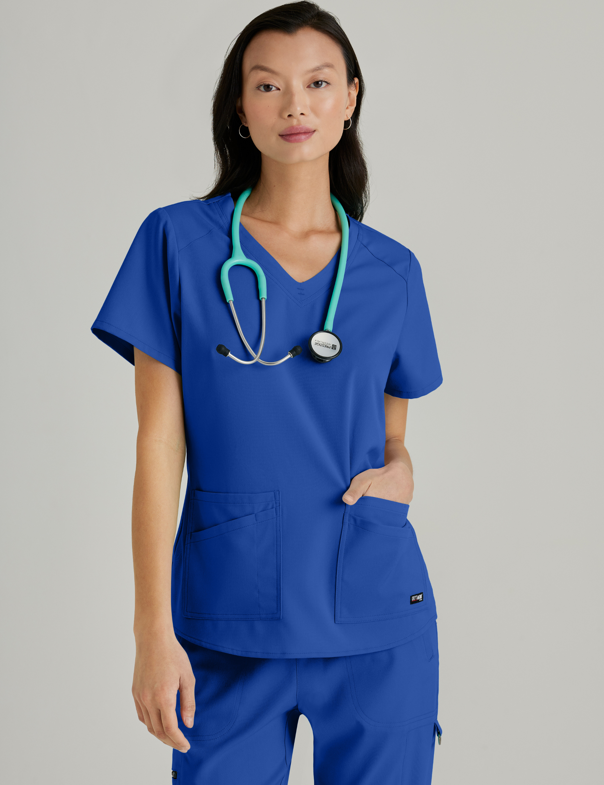 This v-neck medical blouse, with its fitted cut and multiple details, is suitable for all medical professions; dentists, nurses, veterinarians, surgeons, osteopaths...