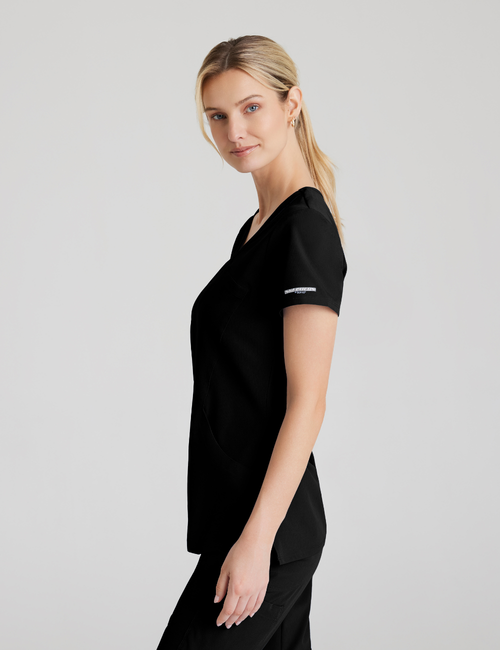 Blouse hides heart with a fitted waist, stitching details, 3 pockets.