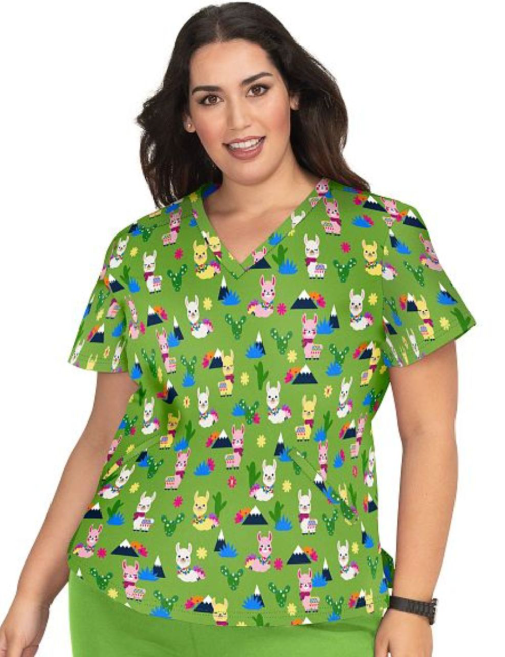 Released Released! Is that refrain already thinking in your head? Your patients will be amused to see you wearing this blouse printed under the sign of Elsa, the Snow Queen! Maybe they'll sing too when they see you!