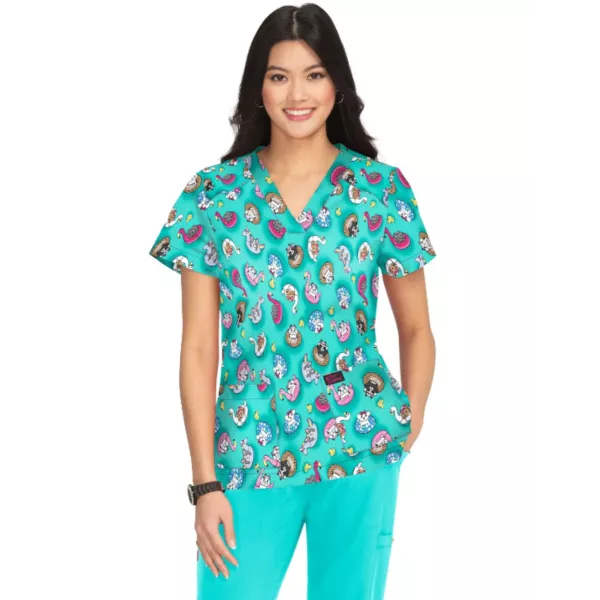 Released Released! Is that refrain already thinking in your head? Your patients will be amused to see you wearing this blouse printed under the sign of Elsa, the Snow Queen! Maybe they'll sing too when they see you!