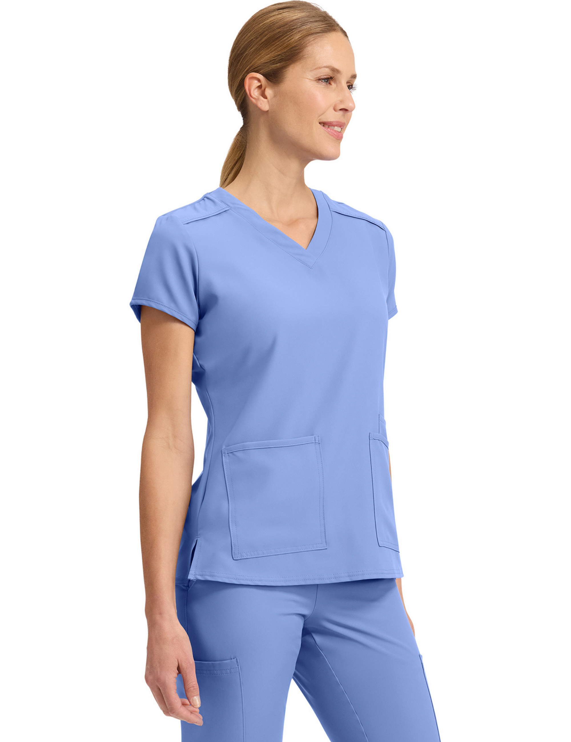 V-neck blouse with seam detail, 4 pockets