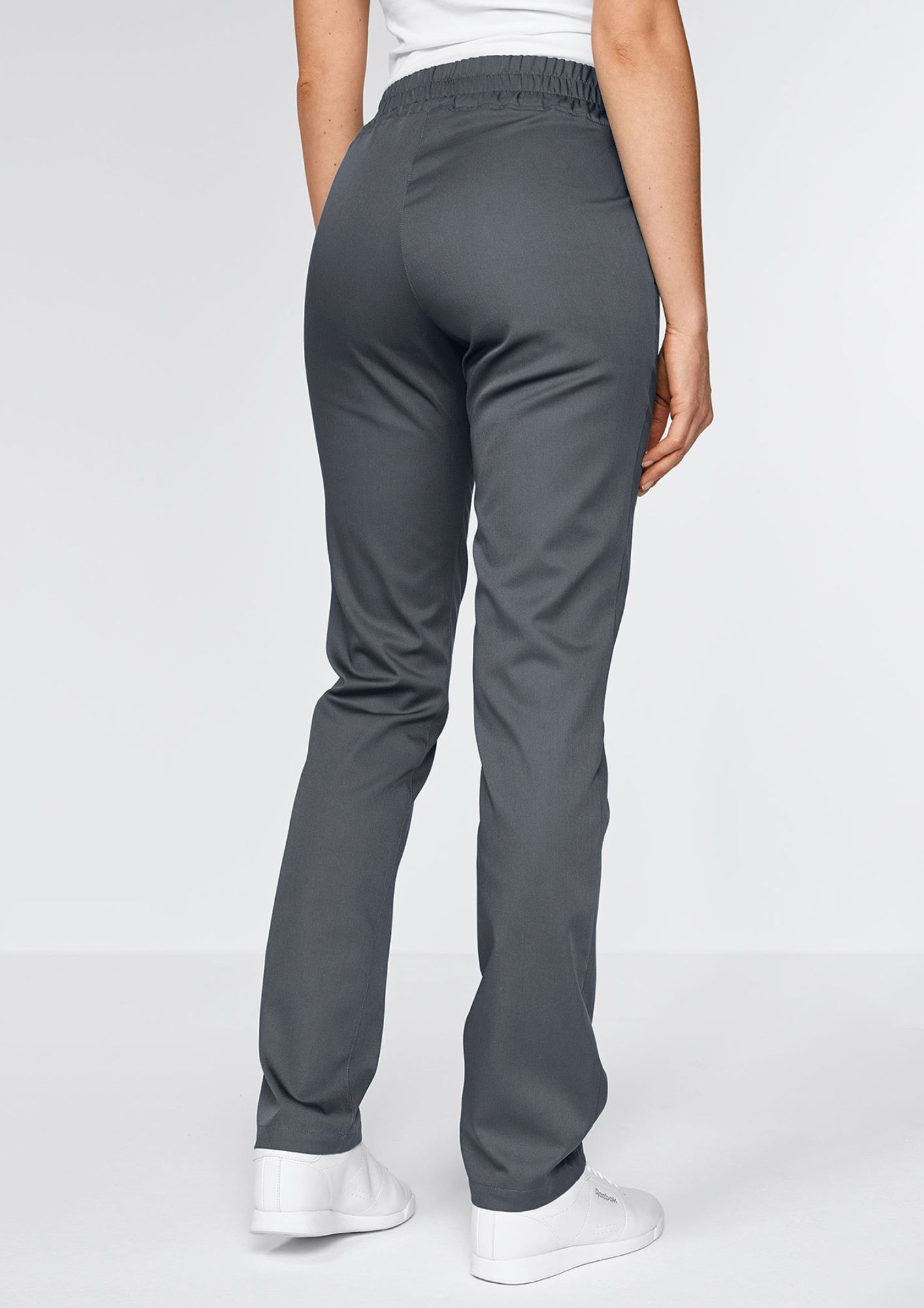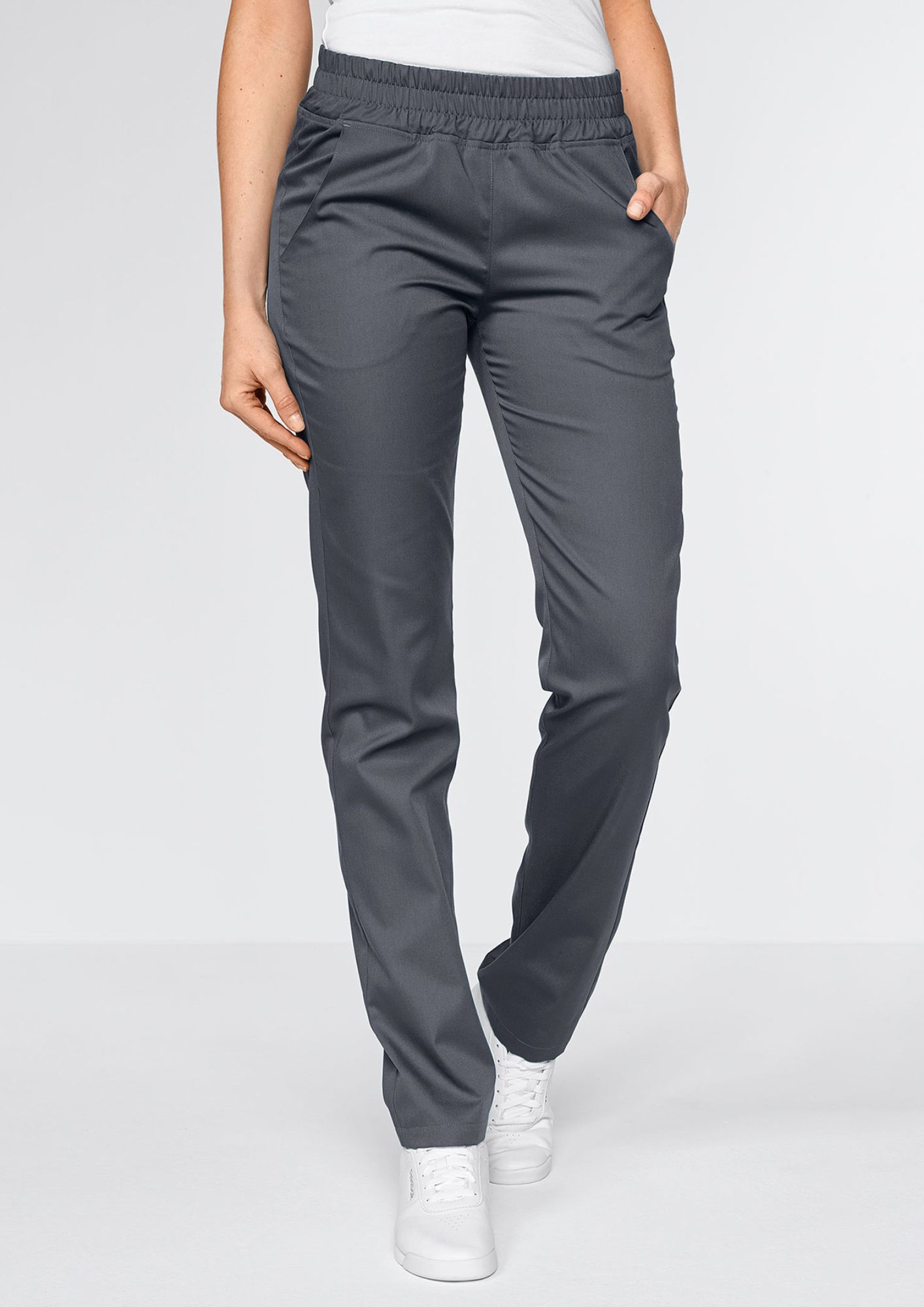 Elige el pantalón NAPOLI, fácil de poner, que combina un corte amplio y cintura elástica para un confort durante todo el día, con un diseño sobrio y un tejido de fácil cuidado, ideal para el uso profesional diario.