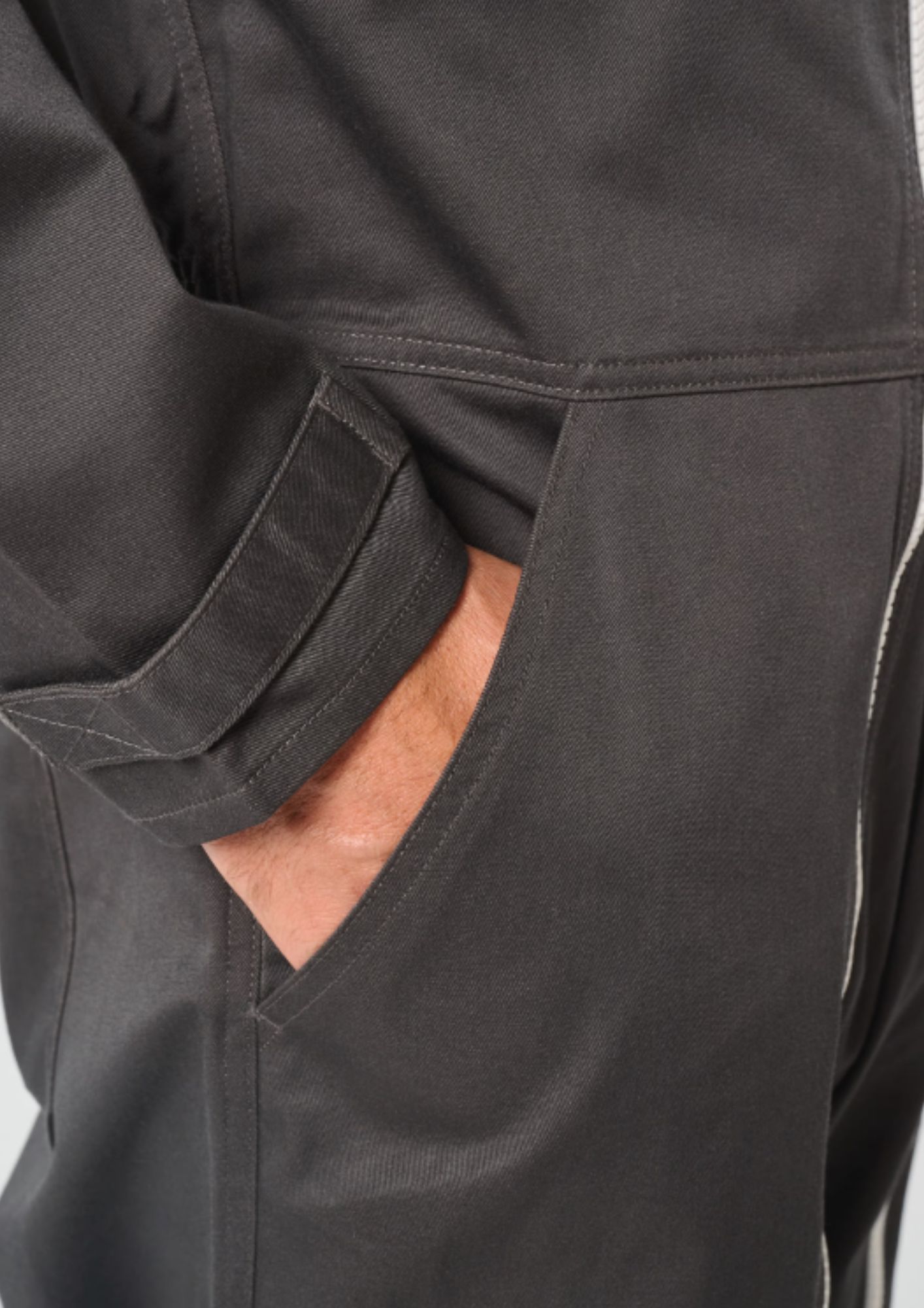Mono unisex con doble cremallera que ofrece comodidad y libertad de movimiento gracias a su panel trasero con pliegues y cintura elástica, equipado con múltiples bolsillos prácticos (pecho, laterales, muslo y espalda), cierres seguros con cremalleras y velcro, reforzado con costuras dobles y triples para una durabilidad óptima, y puños y bajos de pierna ajustables para un ajuste personalizado.