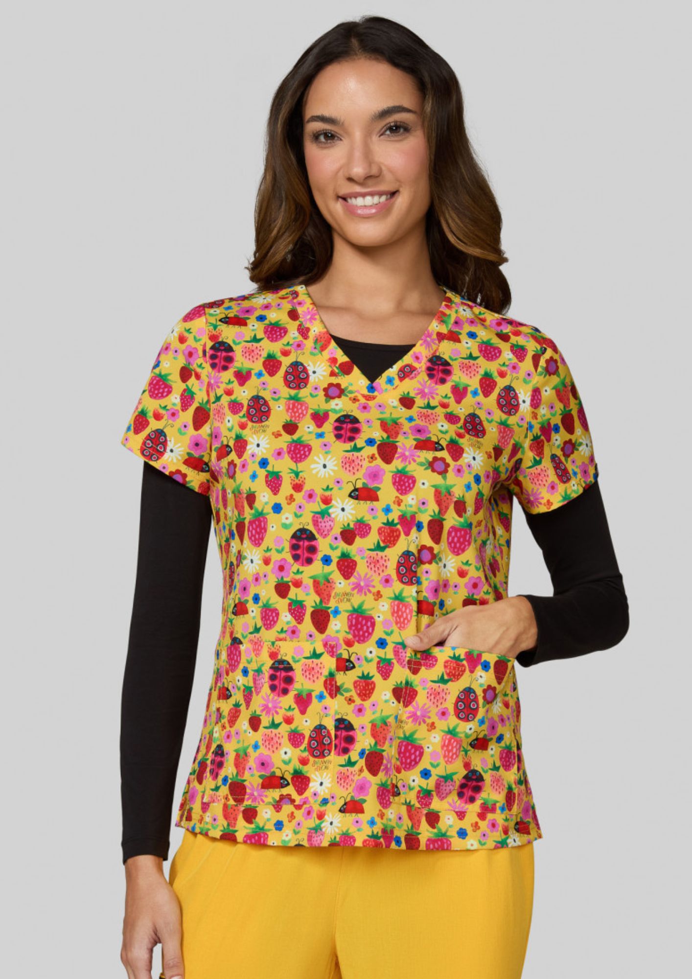 Blusa médica original para mujer "Strawberries and Ladybugs" (384PRA-LDB)