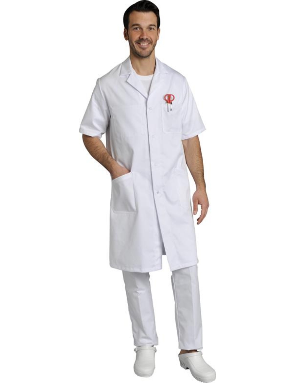 Bata médica de hombre blanca de manga corta Cotton Oscar, SNV (OSCARMC200)