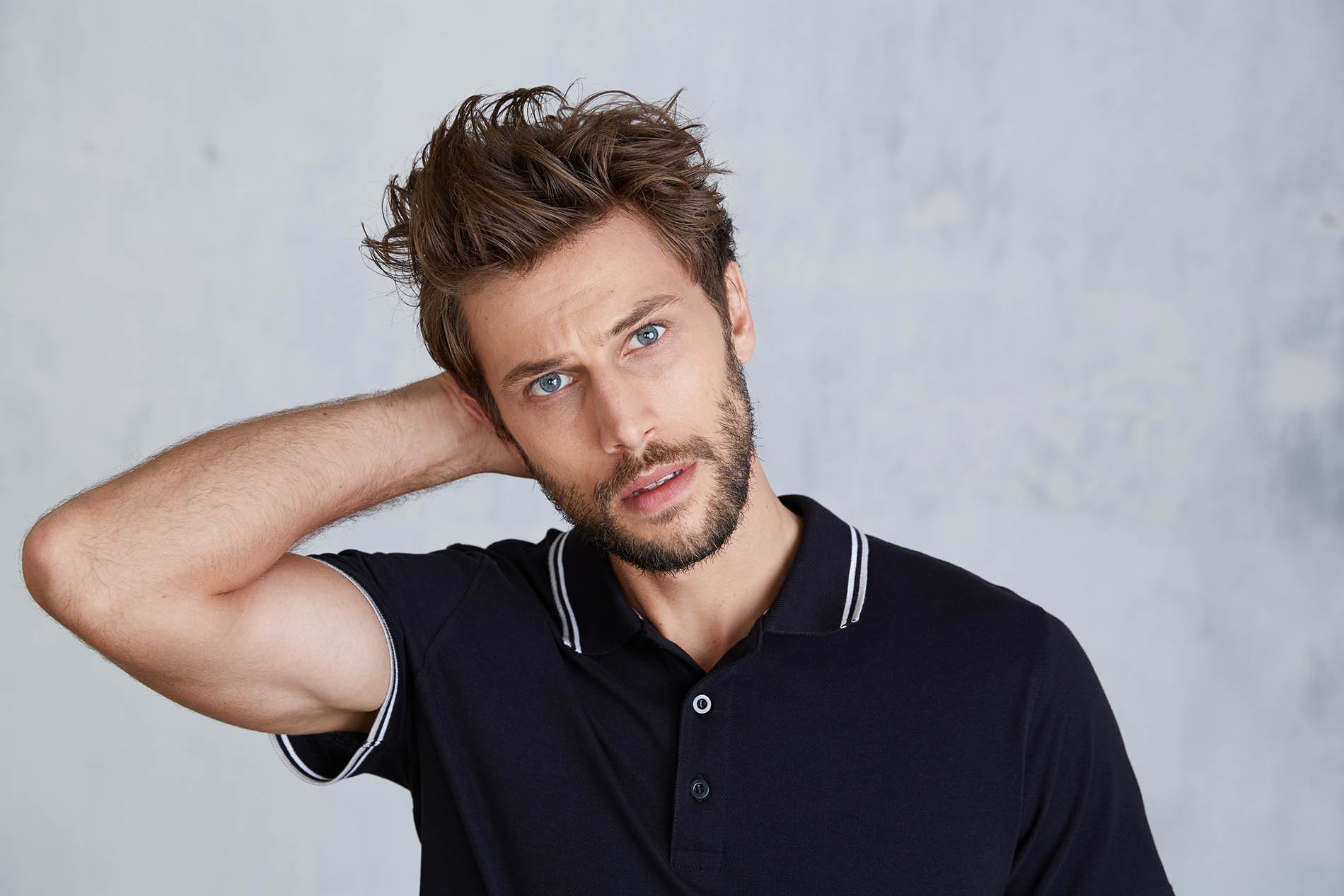 100% algodón piqué. Tira de botones 3 botones. Banda de contraste de limpieza en el escote y en las rajas laterales. Acabado acanalado de contraste con ribetes de contraste en el cuello y en las mangas inferiores. Prenda con doble aguja en el fondo. Corte de hombre.