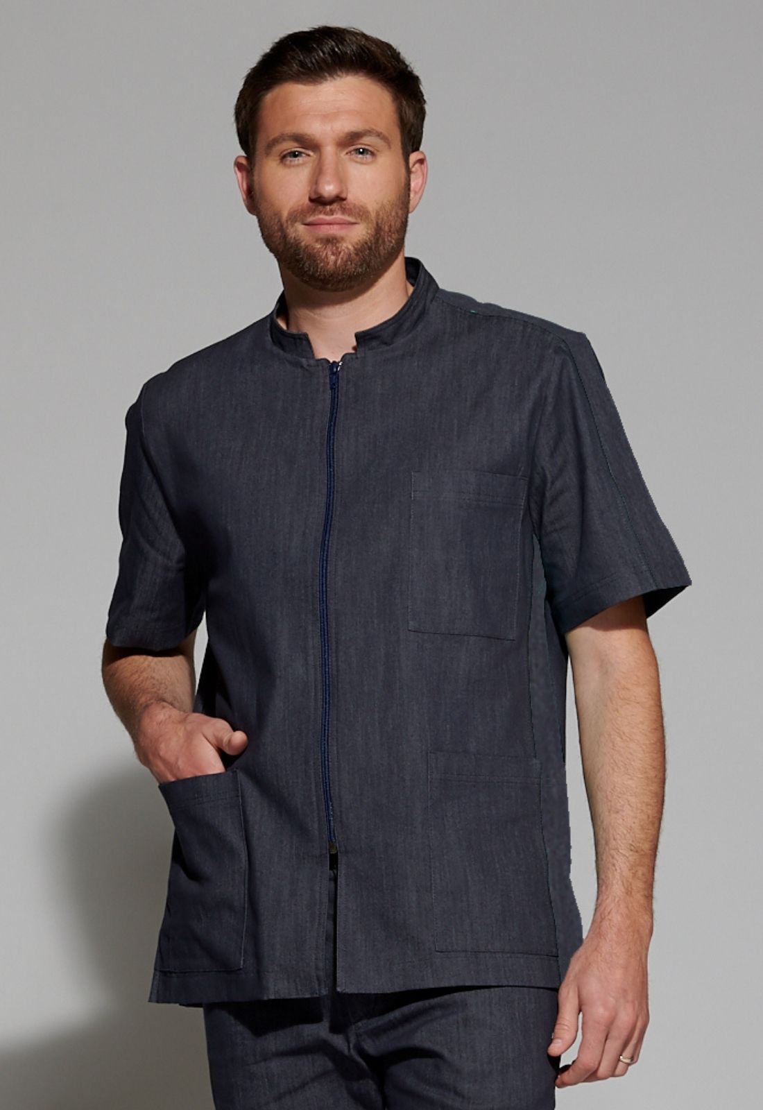 Bata médica con cremallera vaquera - Hombre