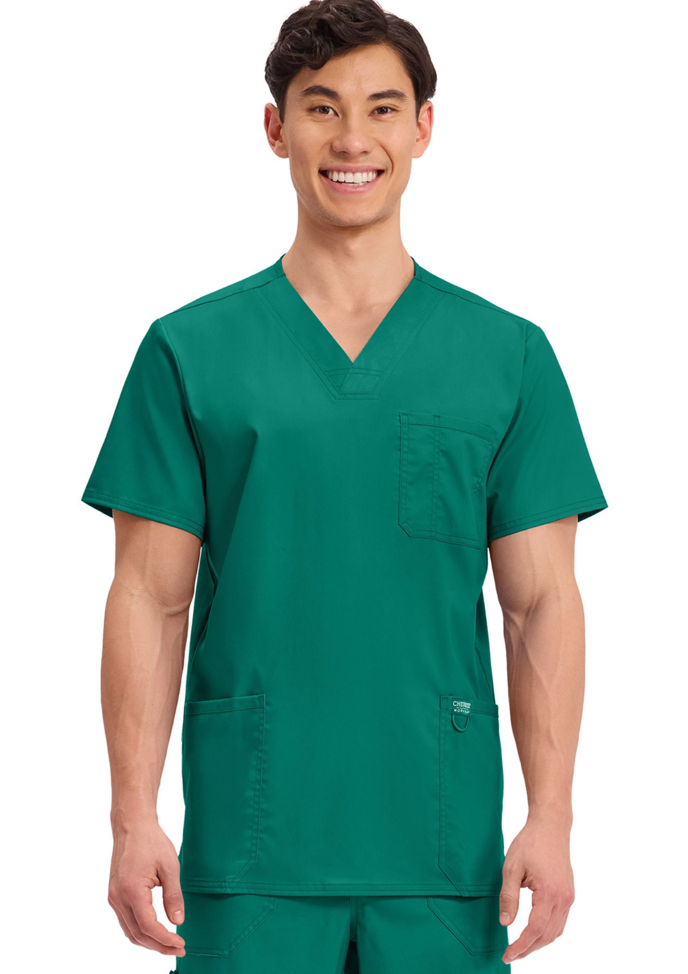Esta bata médica para hombre, con cuello en V y múltiples detalles, de "Cherokee", es adecuada para todas las profesiones médicas.
