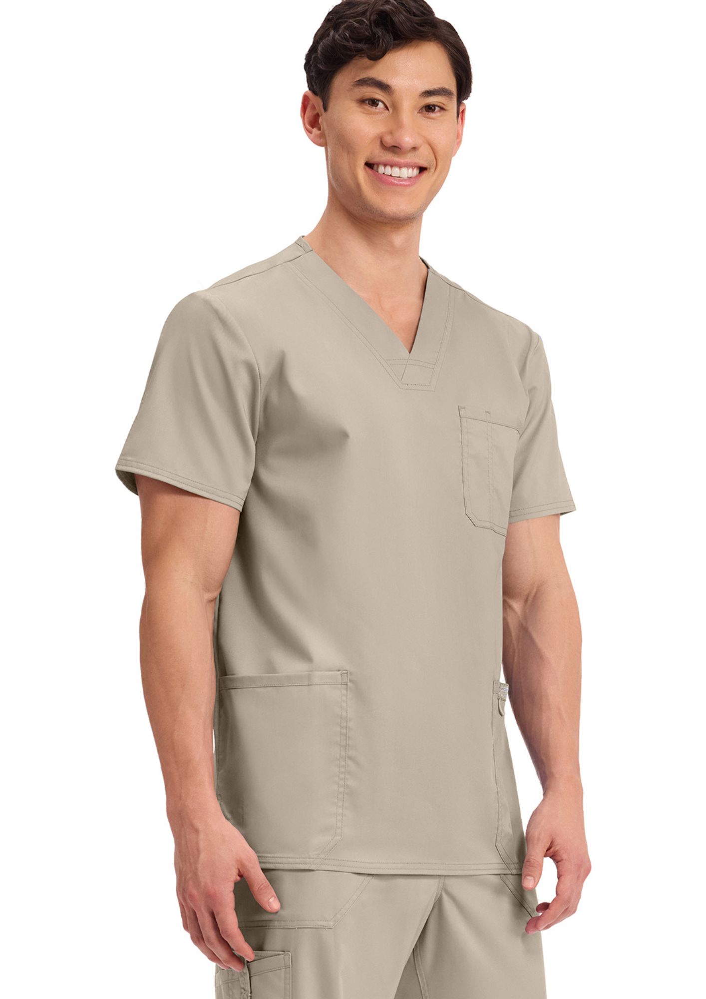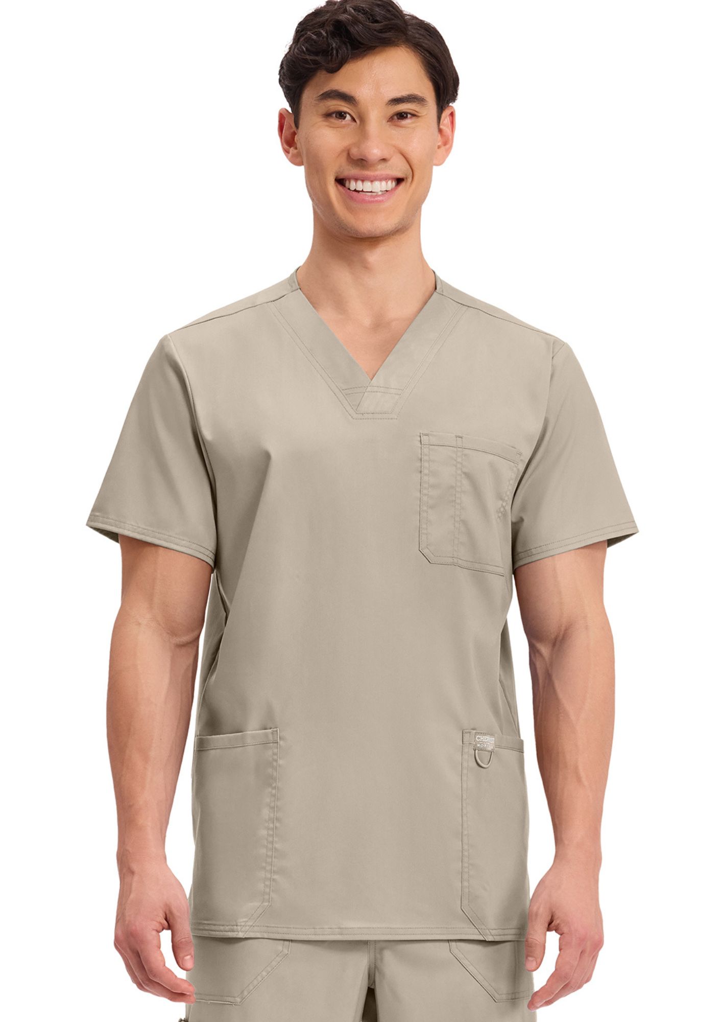 Esta bata médica para hombre, con cuello en V y múltiples detalles, de "Cherokee", es adecuada para todas las profesiones médicas.