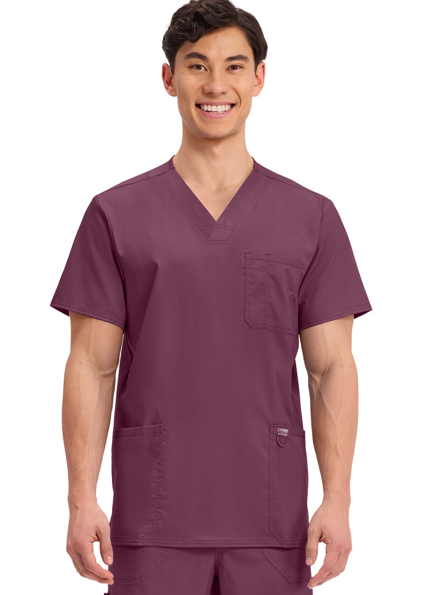 Esta bata médica para hombre, con cuello en V y múltiples detalles, de "Cherokee", es adecuada para todas las profesiones médicas.