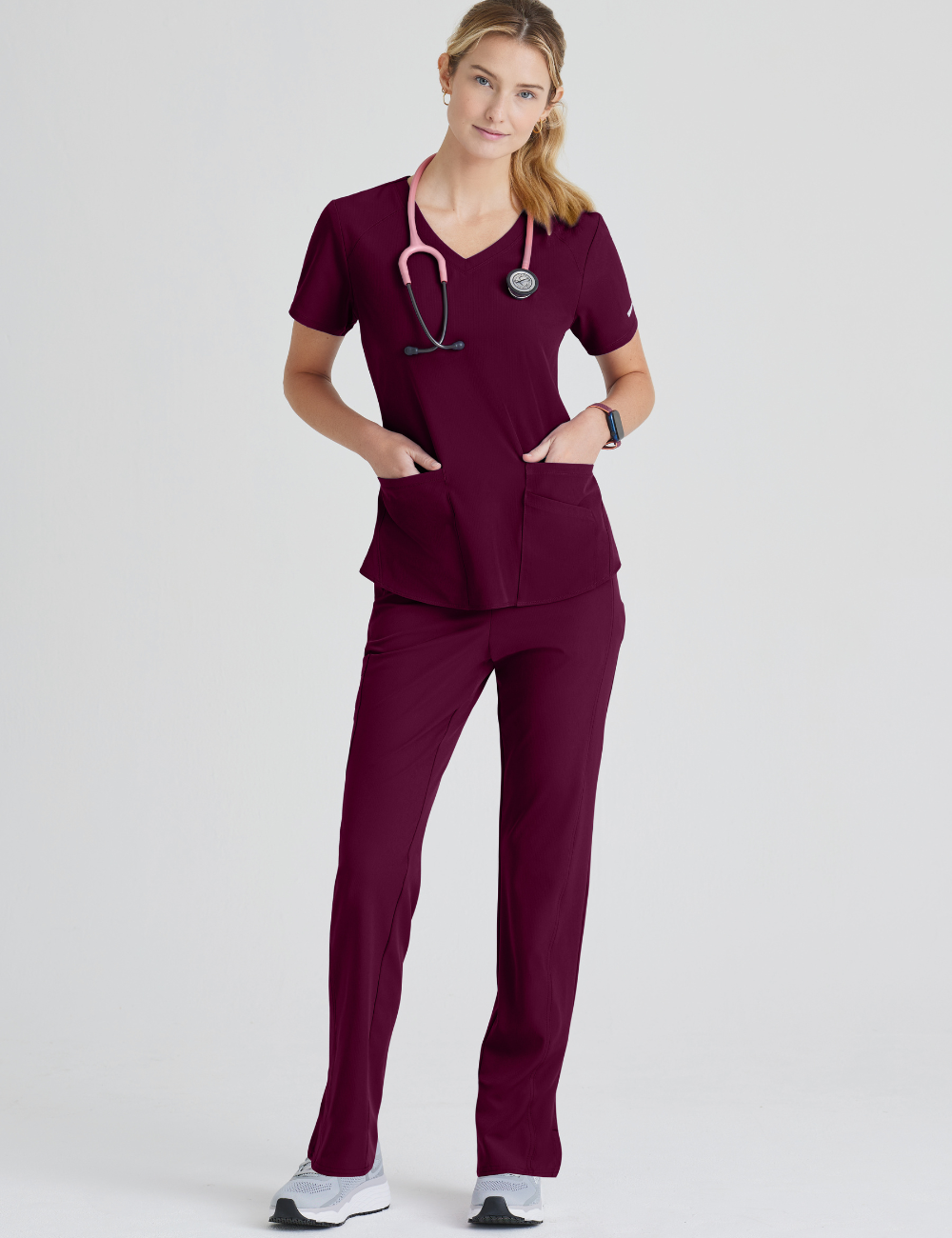 ¡La blusa esencial para tener en tu camerino! La bata médica de los Skechers satisfará todas sus expectativas. Cuello en V, cintura ajustada, detalles de costura, 3 bolsillos, tejido elástico, antitranspirante y antibacteriano.