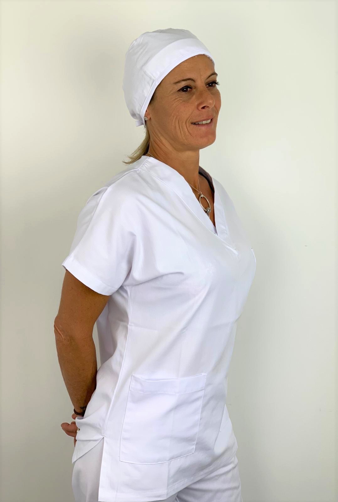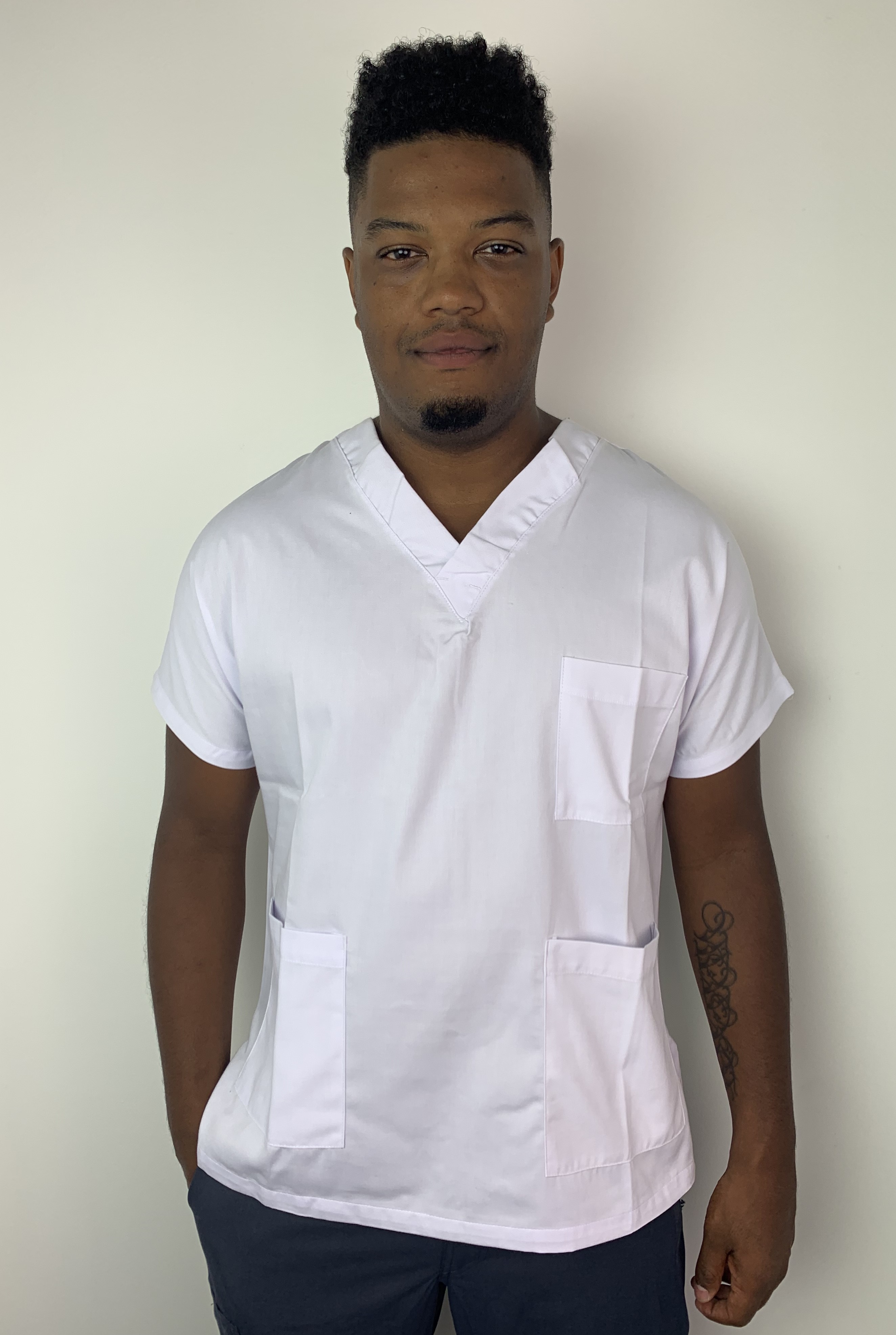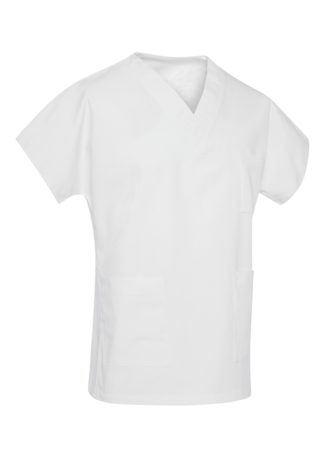 Bata médica blanca unisex, 2 o 3 bolsillos, lavar a 60 grados (CH12)