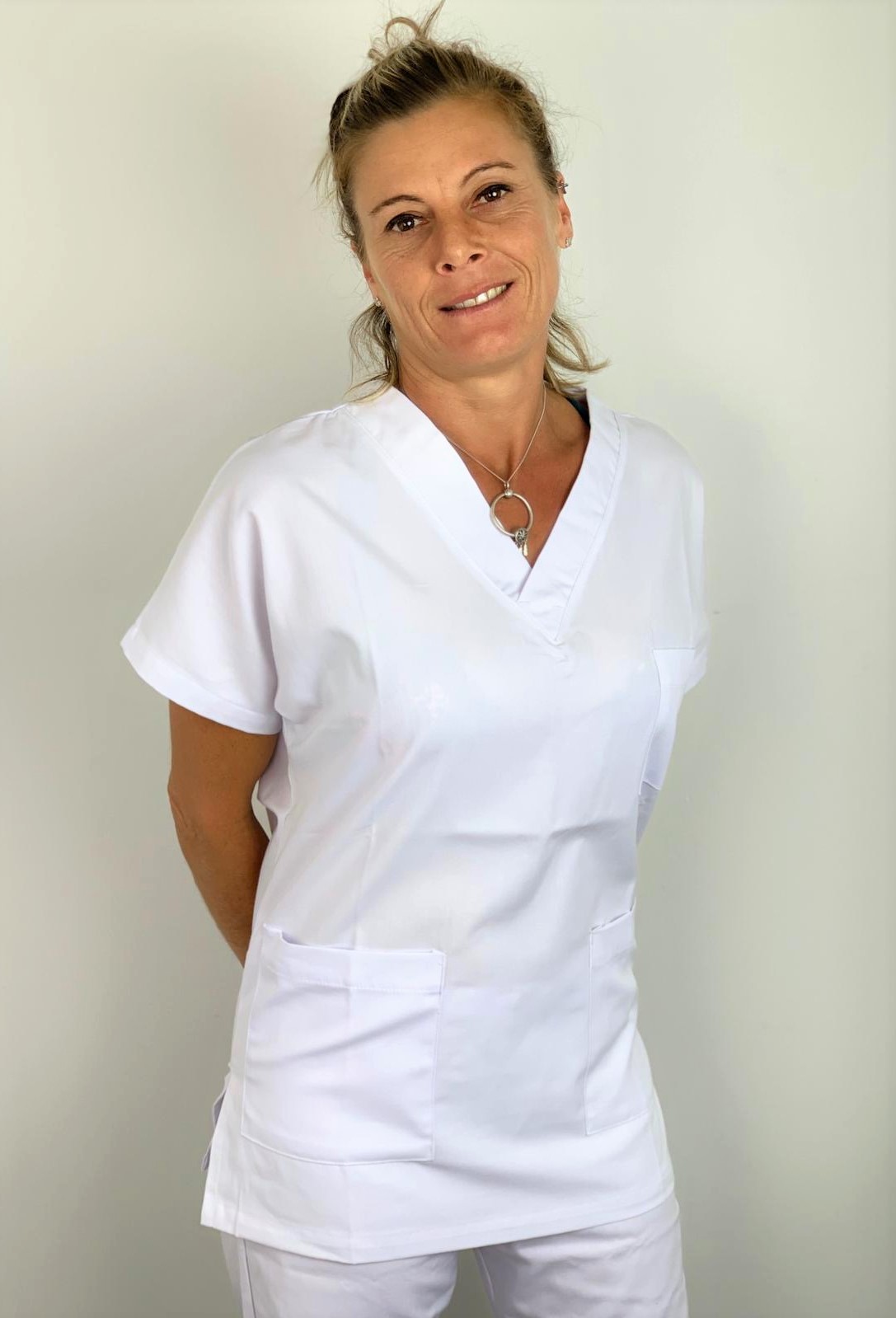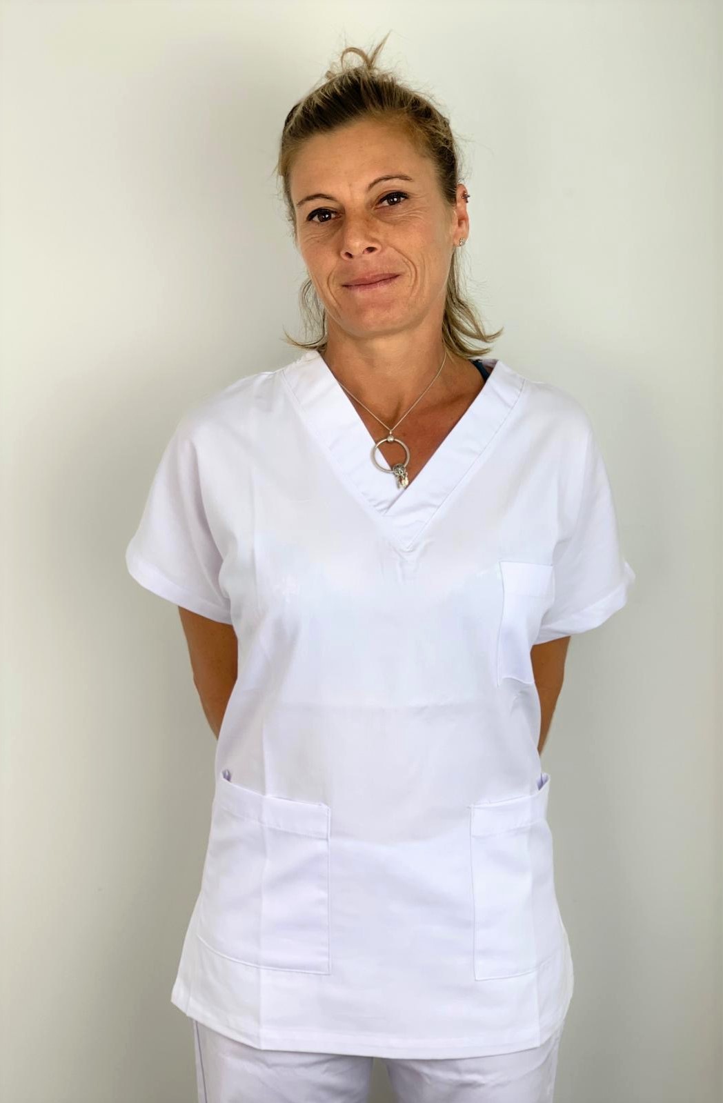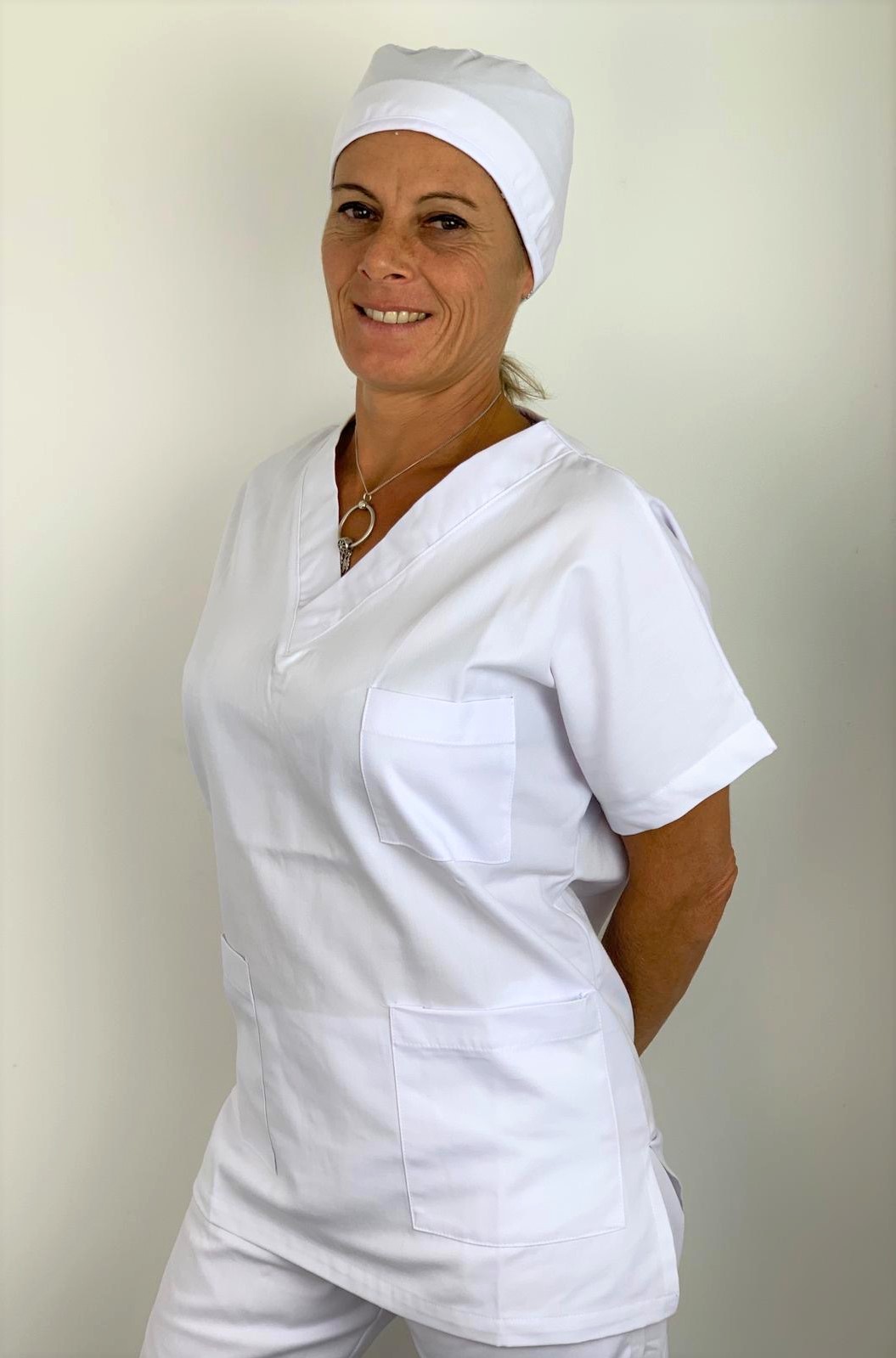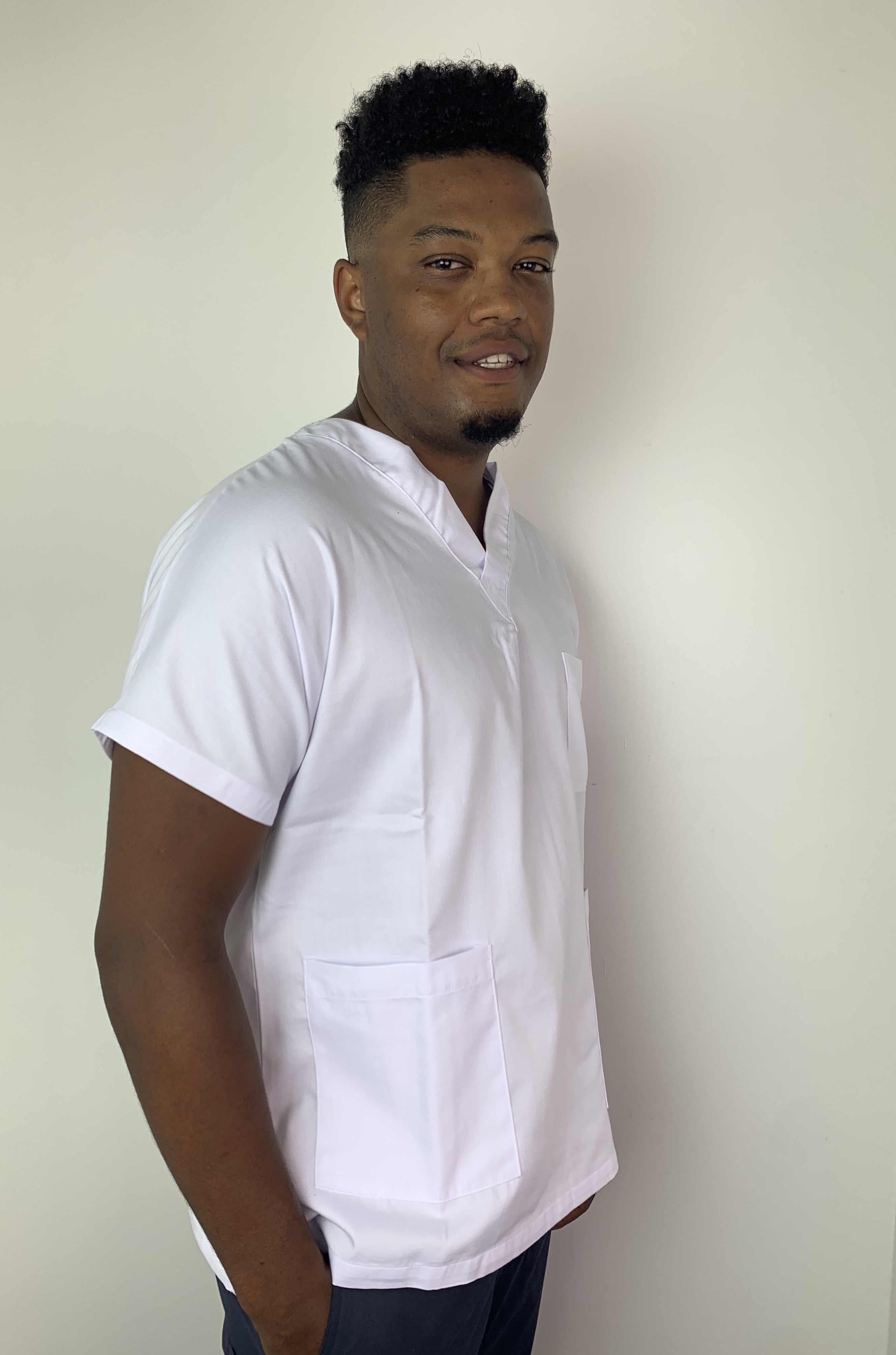 Bata médica blanca unisex, 2 o 3 bolsillos, lavar a 60 grados (CH12)