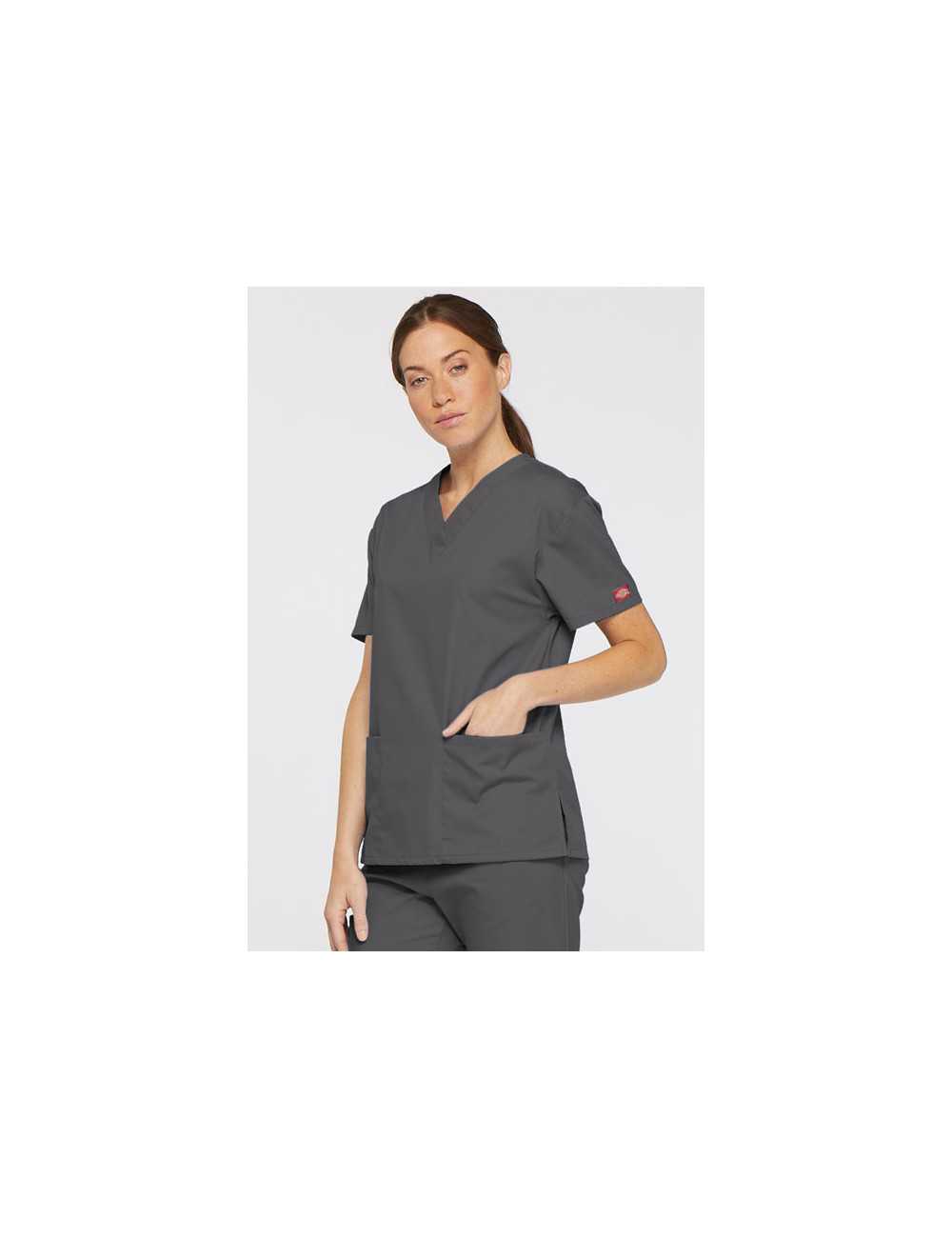 Blusa médica de cuello en V para mujeres, Dickies, 2 bolsillos, Colección "EDS Signature" (86706)