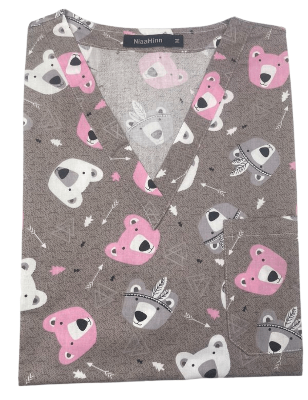 Bata médica unisex estampada "Oso rosa y gris" (62009)