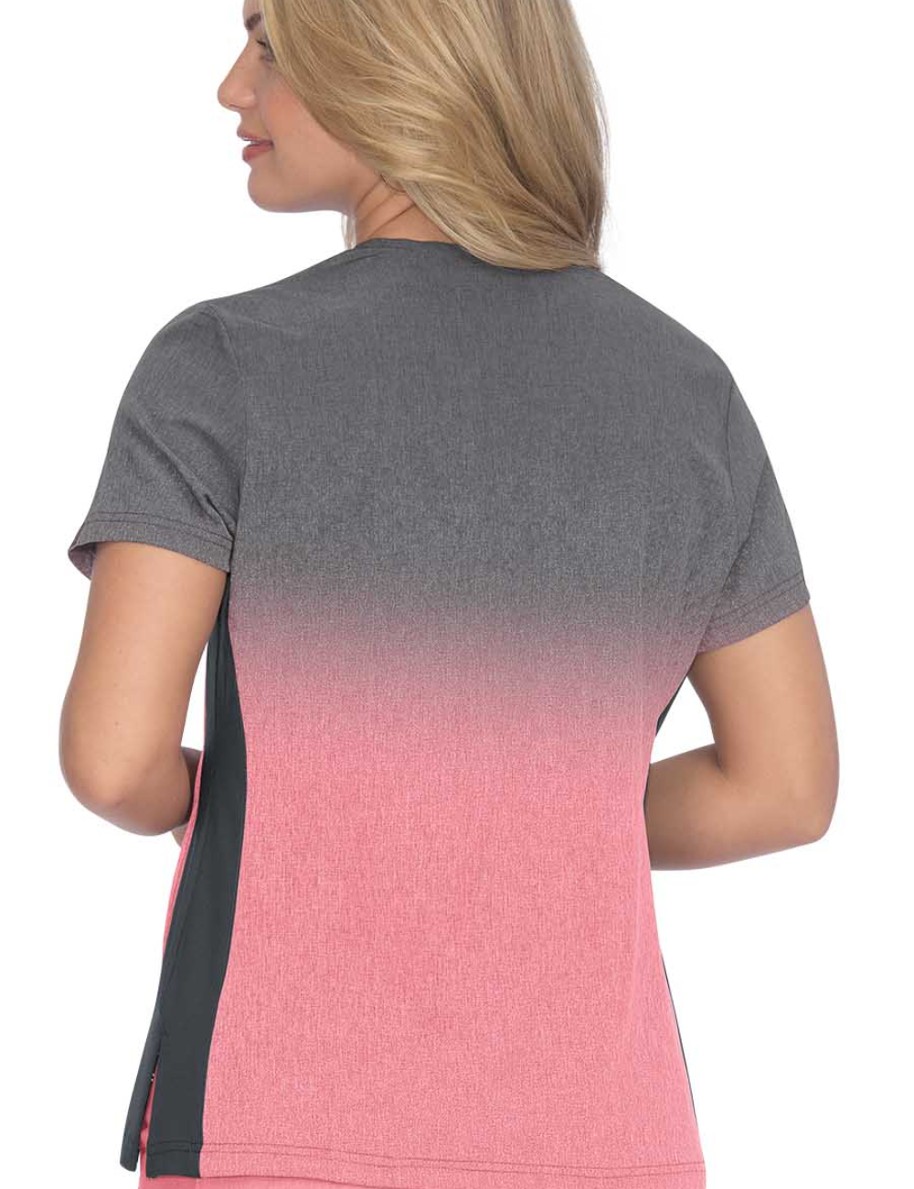 Esta blusa médica estampada con cuello en V y múltiples detalles de "KOI" es adecuada para todas las profesiones médicas.