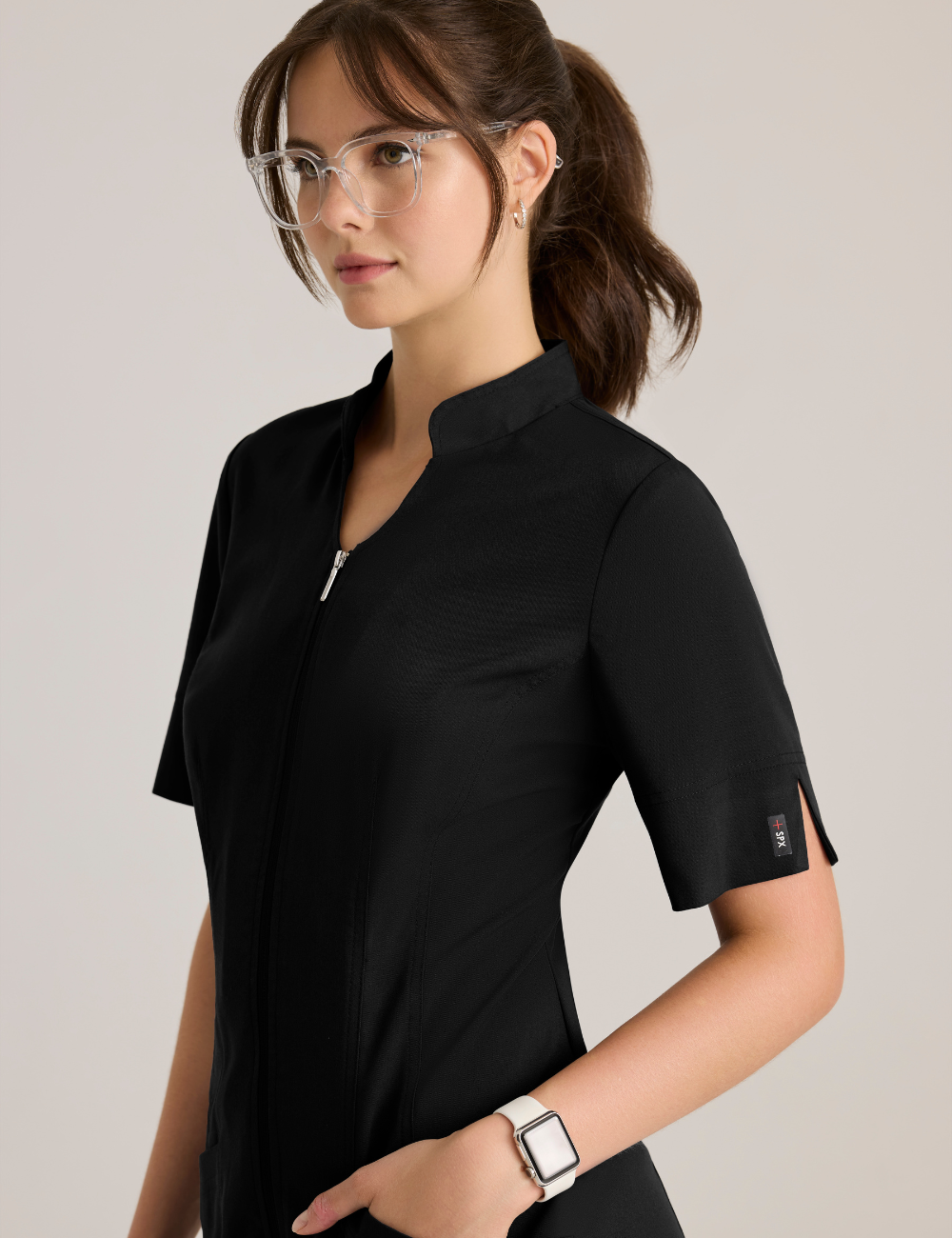 Blusa de cuello en V con detalle de costura, 4 bolsillos