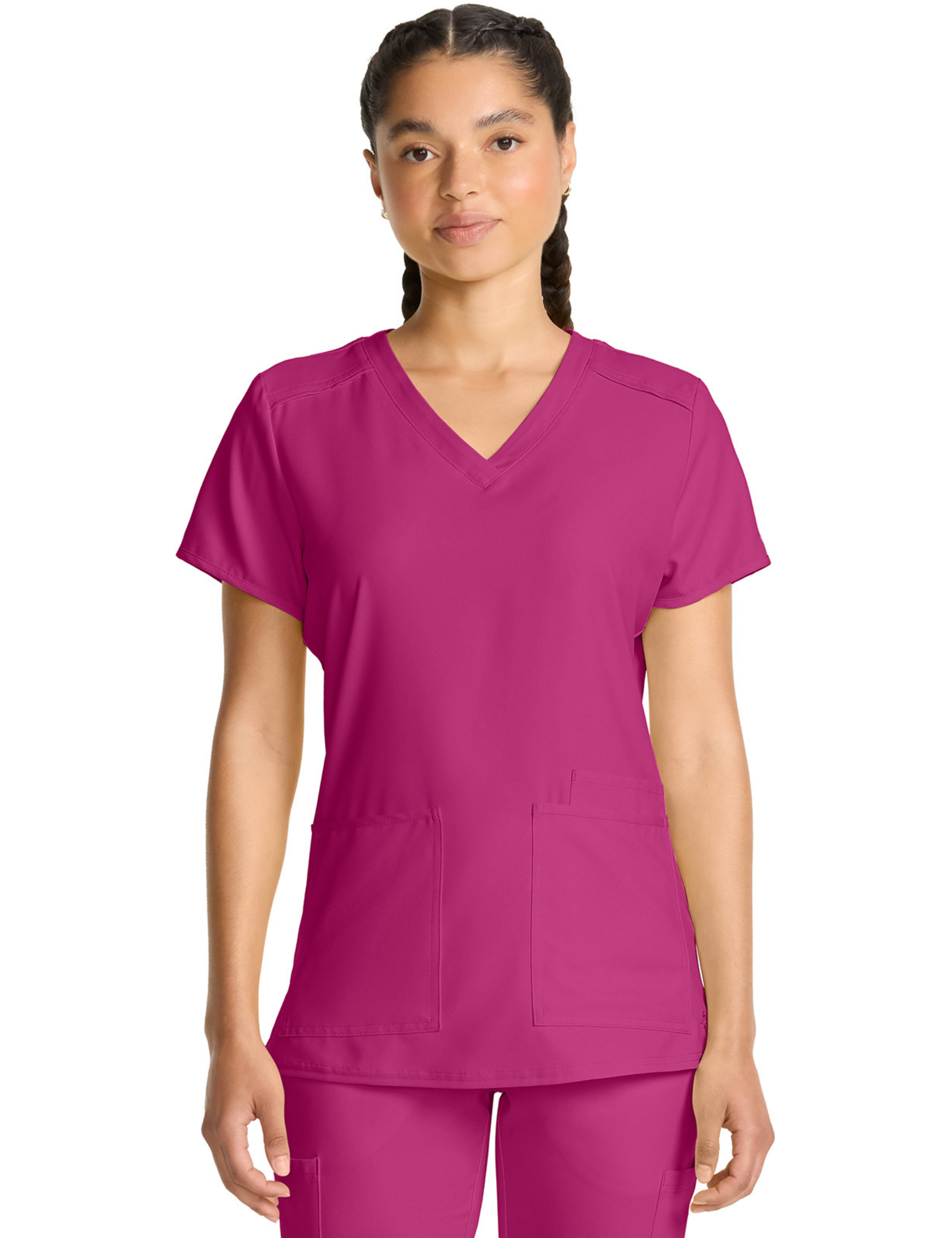 Blusa de cuello en V con detalle de costura, 4 bolsillos