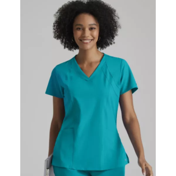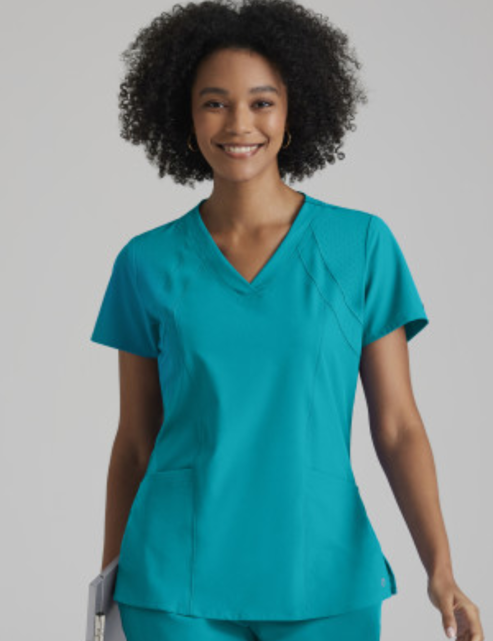 Esta bata médica para mujer, con su corte entallado y sus múltiples detalles, es adecuada para todas las profesiones médicas; Dentistas, enfermeras, osteópatas, cirujanos, veterinarios…