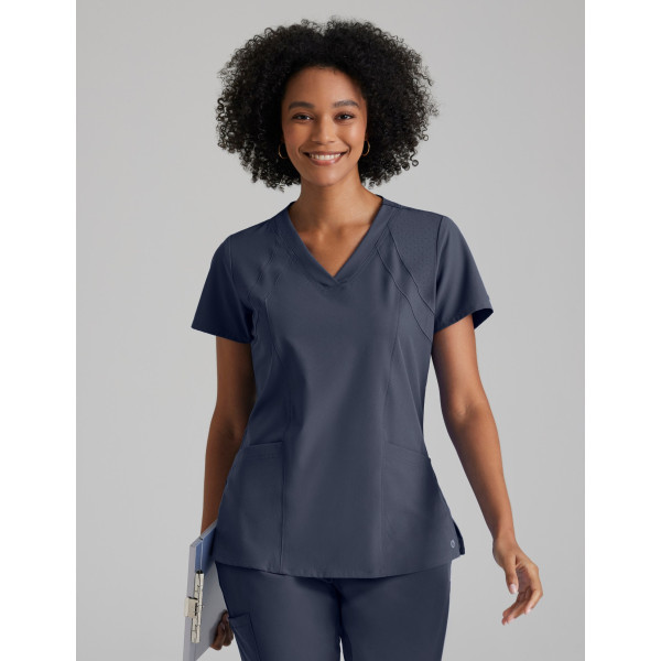 Esta bata médica para mujer, con su corte entallado y sus múltiples detalles, es adecuada para todas las profesiones médicas; Dentistas, enfermeras, osteópatas, cirujanos, veterinarios…