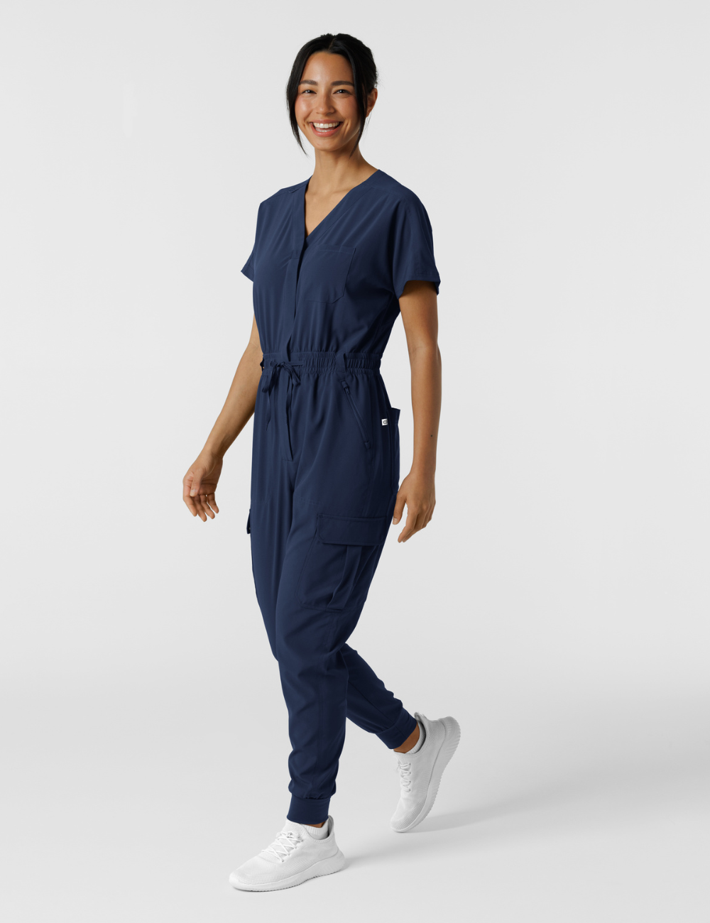 Este traje médico con cuello en V, corte entallado, pantalón tipo jogger y múltiples detalles, es adecuado para todas las profesiones médicas; dentistas, enfermeras, veterinarios, cirujanos, osteópatas...