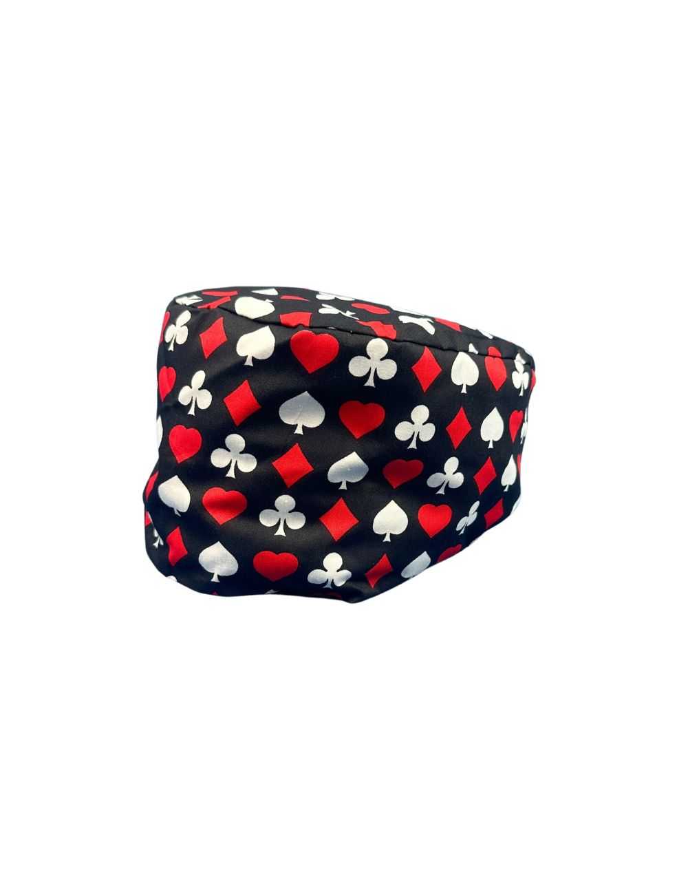 ¡Añade un toque único a tu outfit con el gorro médico de pelo largo “Card Game”! Elegante y práctico, se fija fácilmente con una abrazadera para cordón e incluye una diadema antisudor. Ideal para cabello largo, se adapta a todo tipo de cuerpo. 100% algodón, reutilizable y unisex, esta gorra es perfecta para un look original sin dejar de ser profesional.