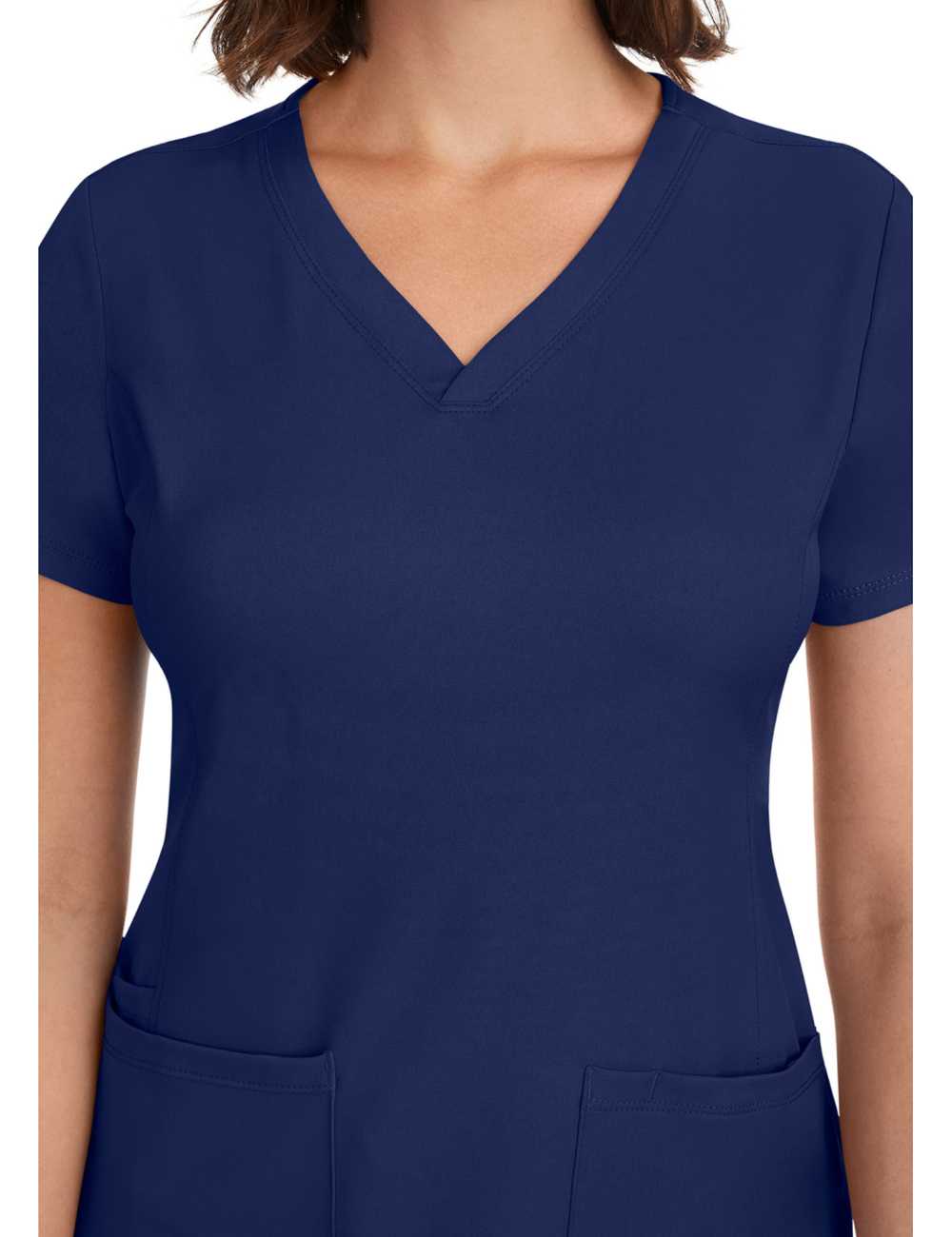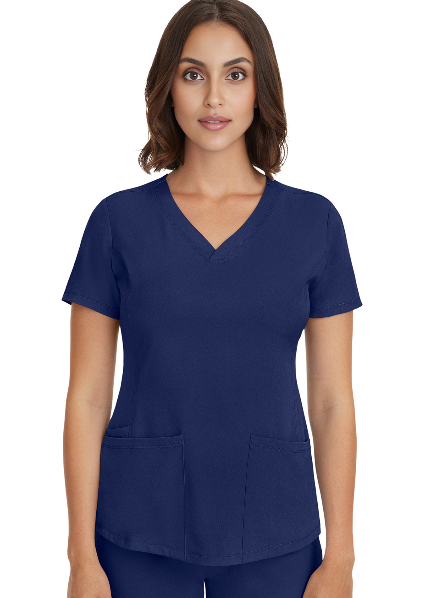 Esta blusa médica para mujer combina estilo y practicidad para acompañar a los profesionales de la salud en su día a día. Con su cuello en V atemporal, aberturas laterales y corte entallado, se adapta perfectamente a la silueta al tiempo que ofrece una gran libertad de movimiento.