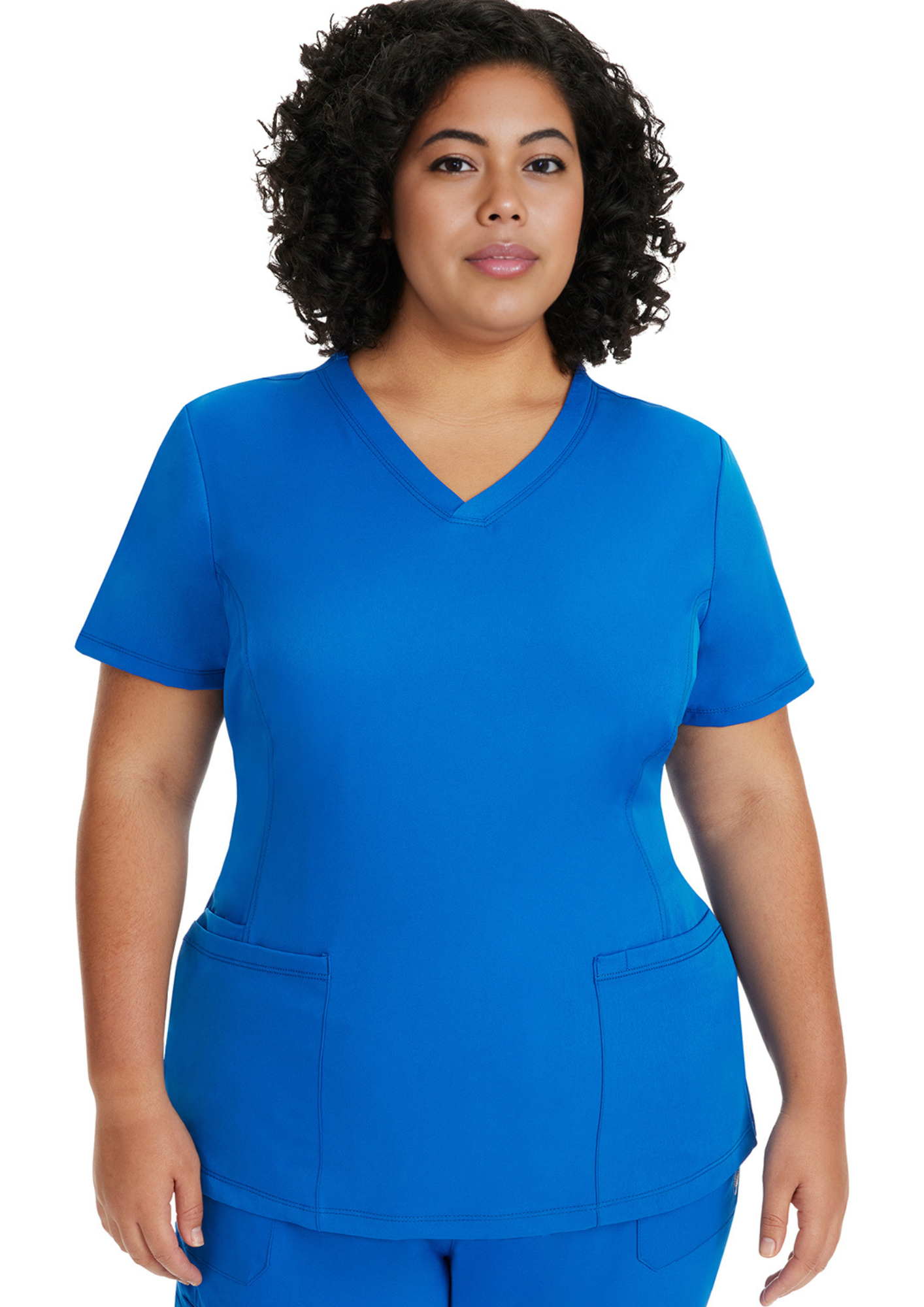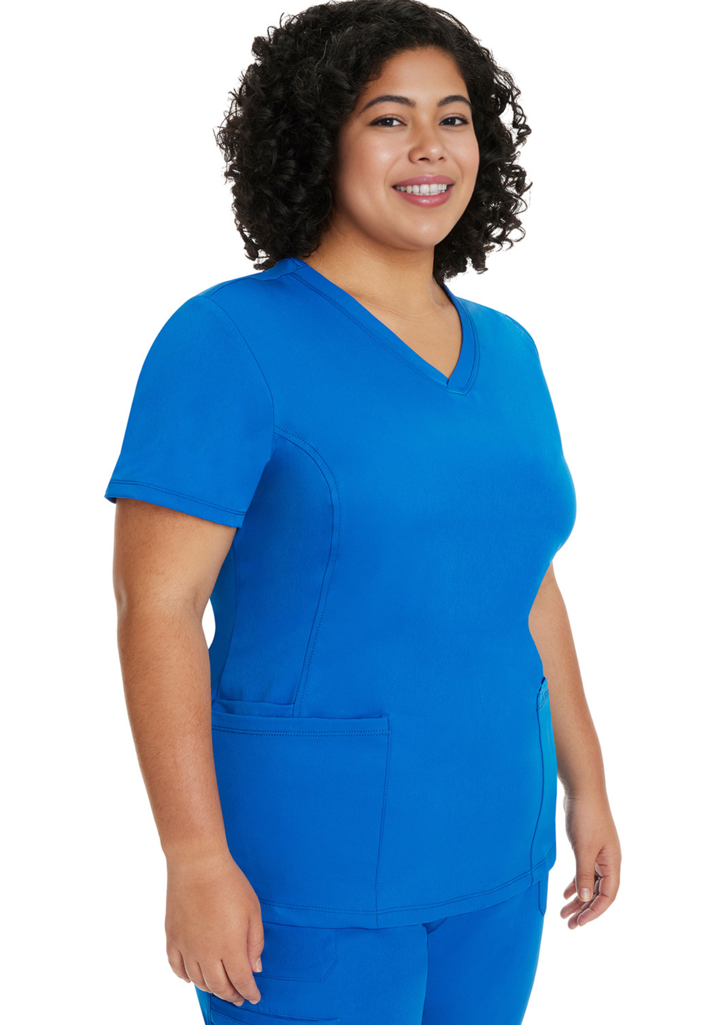 Esta blusa médica para mujer combina estilo y practicidad para acompañar a los profesionales de la salud en su día a día. Con su cuello en V atemporal, aberturas laterales y corte entallado, se adapta perfectamente a la silueta al tiempo que ofrece una gran libertad de movimiento.