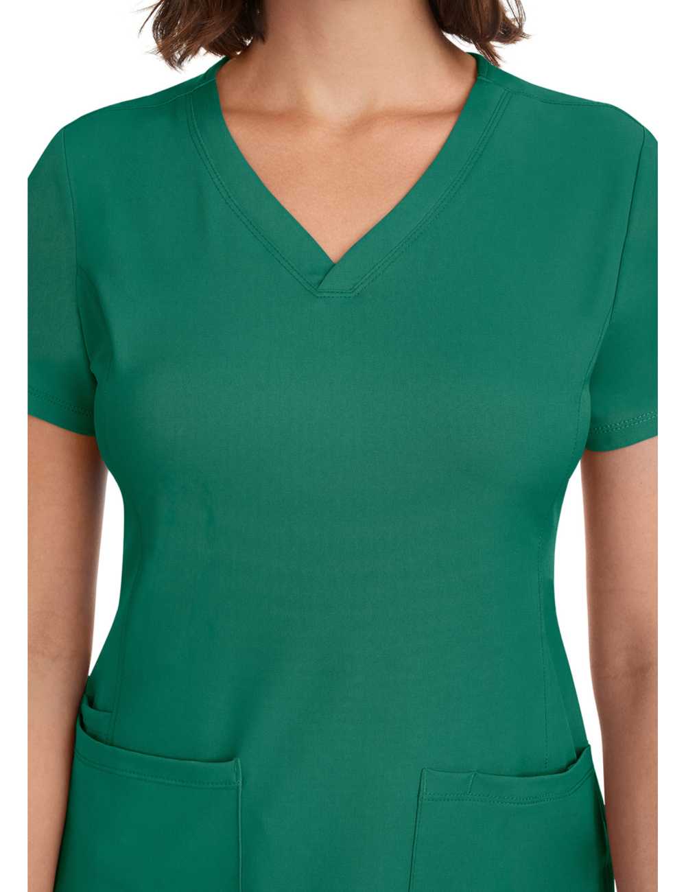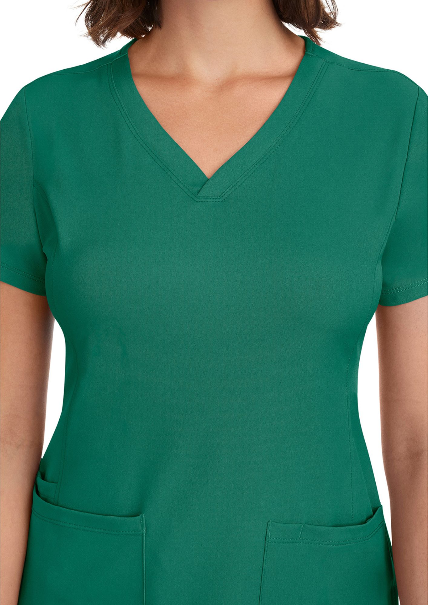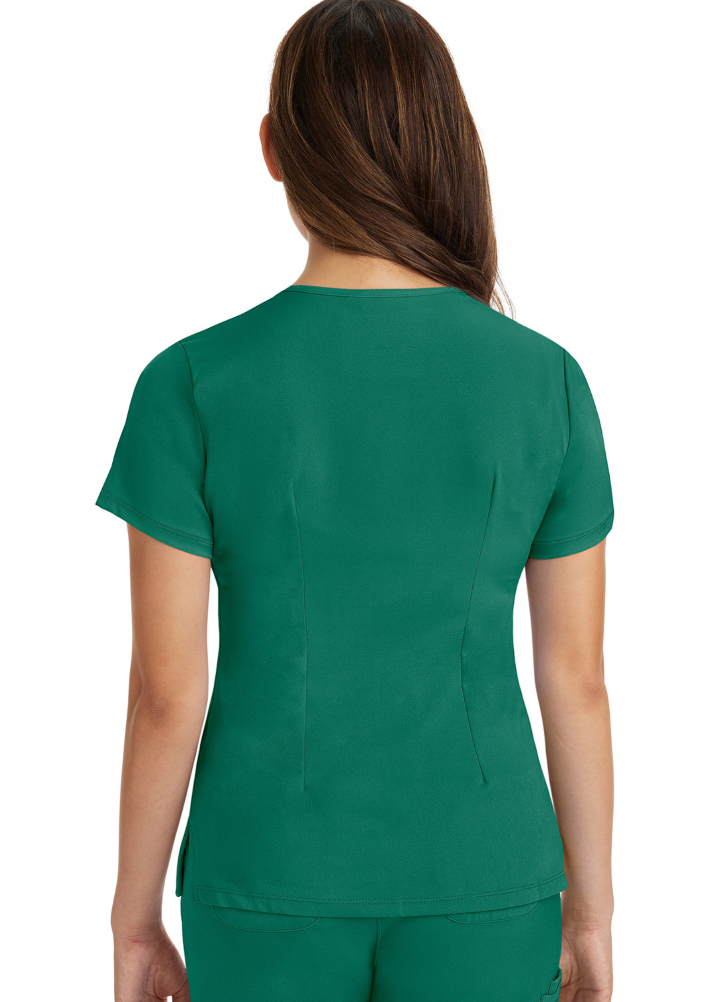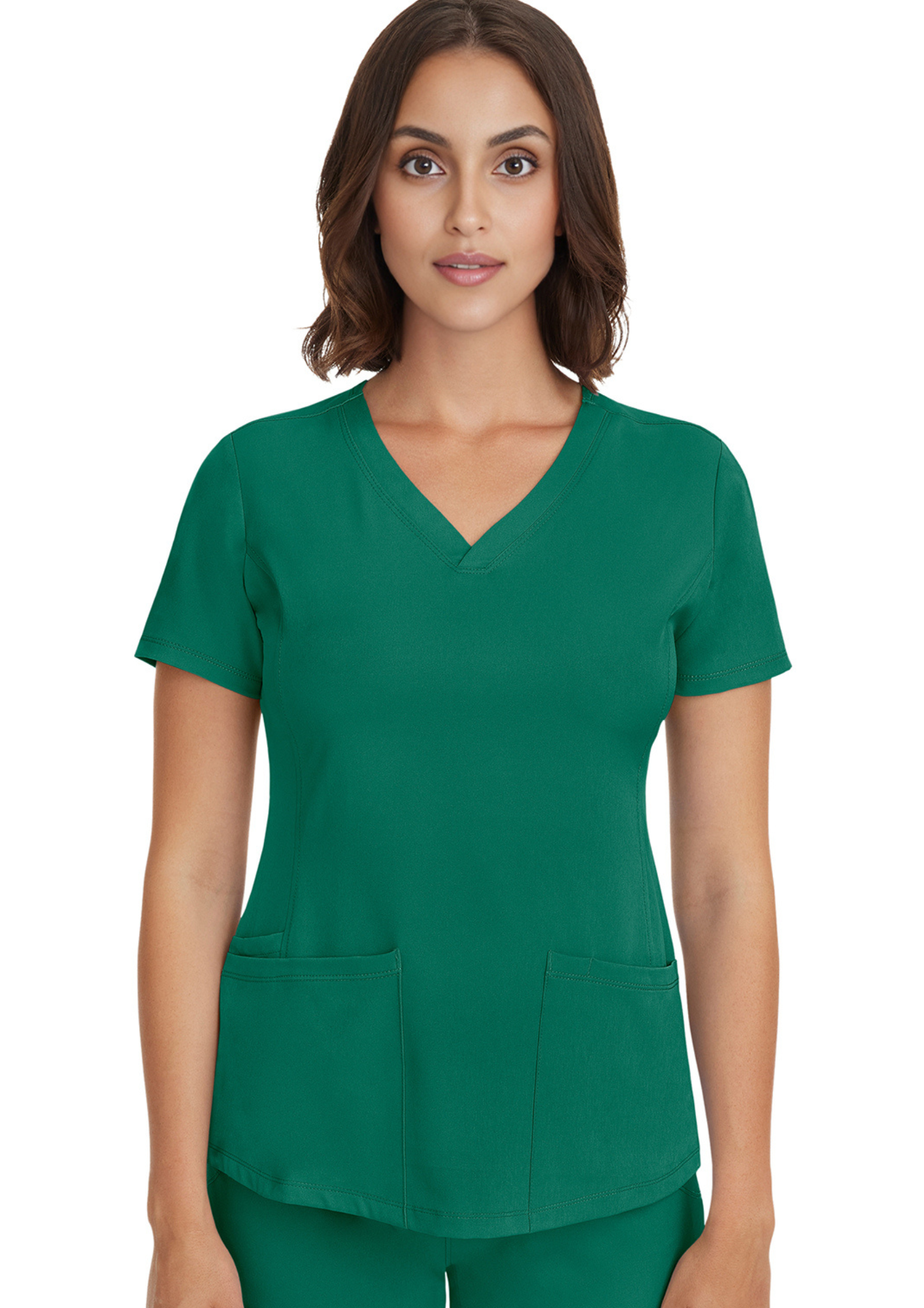 Esta blusa médica para mujer combina estilo y practicidad para acompañar a los profesionales de la salud en su día a día. Con su cuello en V atemporal, aberturas laterales y corte entallado, se adapta perfectamente a la silueta al tiempo que ofrece una gran libertad de movimiento.