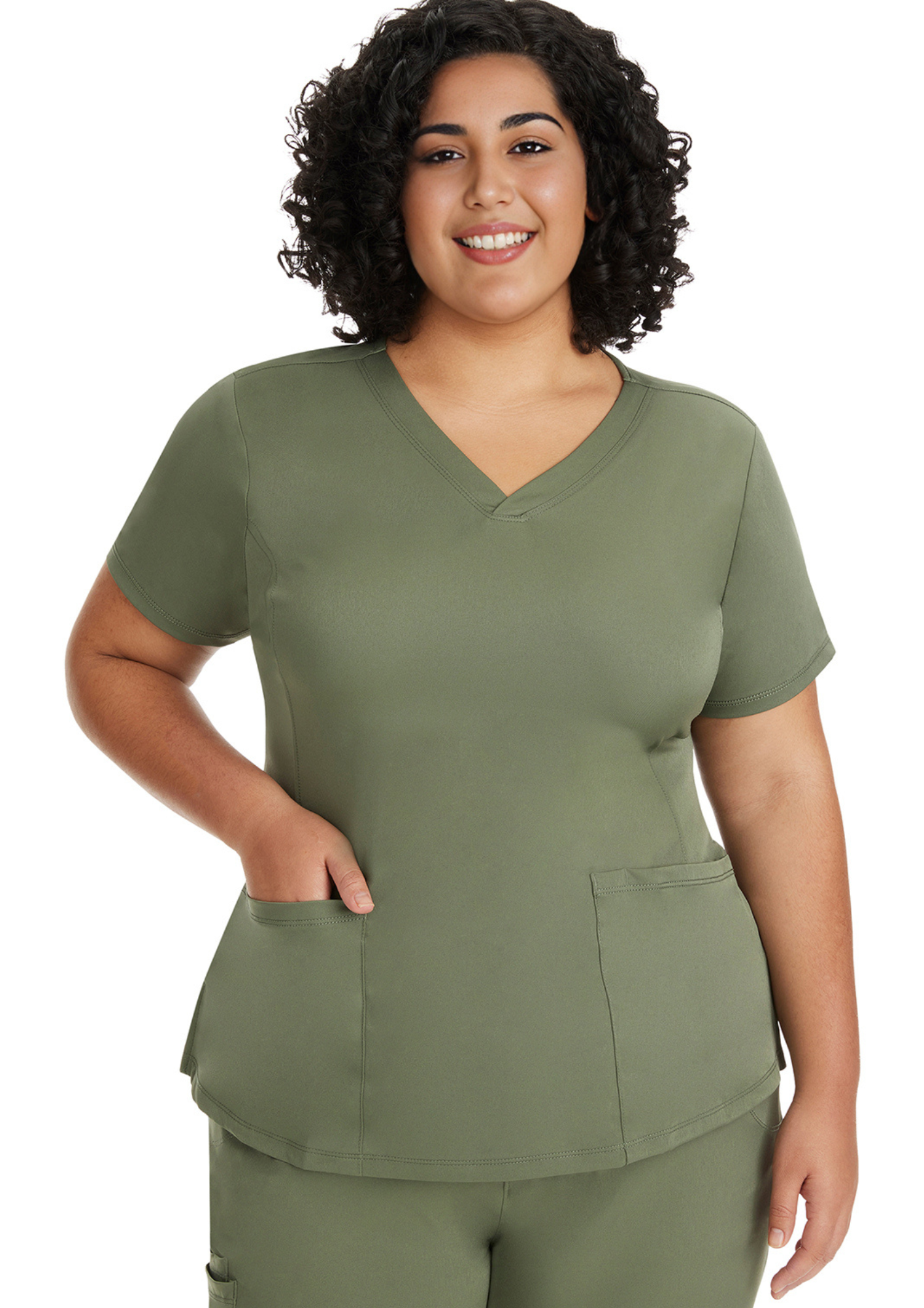 Esta blusa médica para mujer combina estilo y practicidad para acompañar a los profesionales de la salud en su día a día. Con su cuello en V atemporal, aberturas laterales y corte entallado, se adapta perfectamente a la silueta al tiempo que ofrece una gran libertad de movimiento.