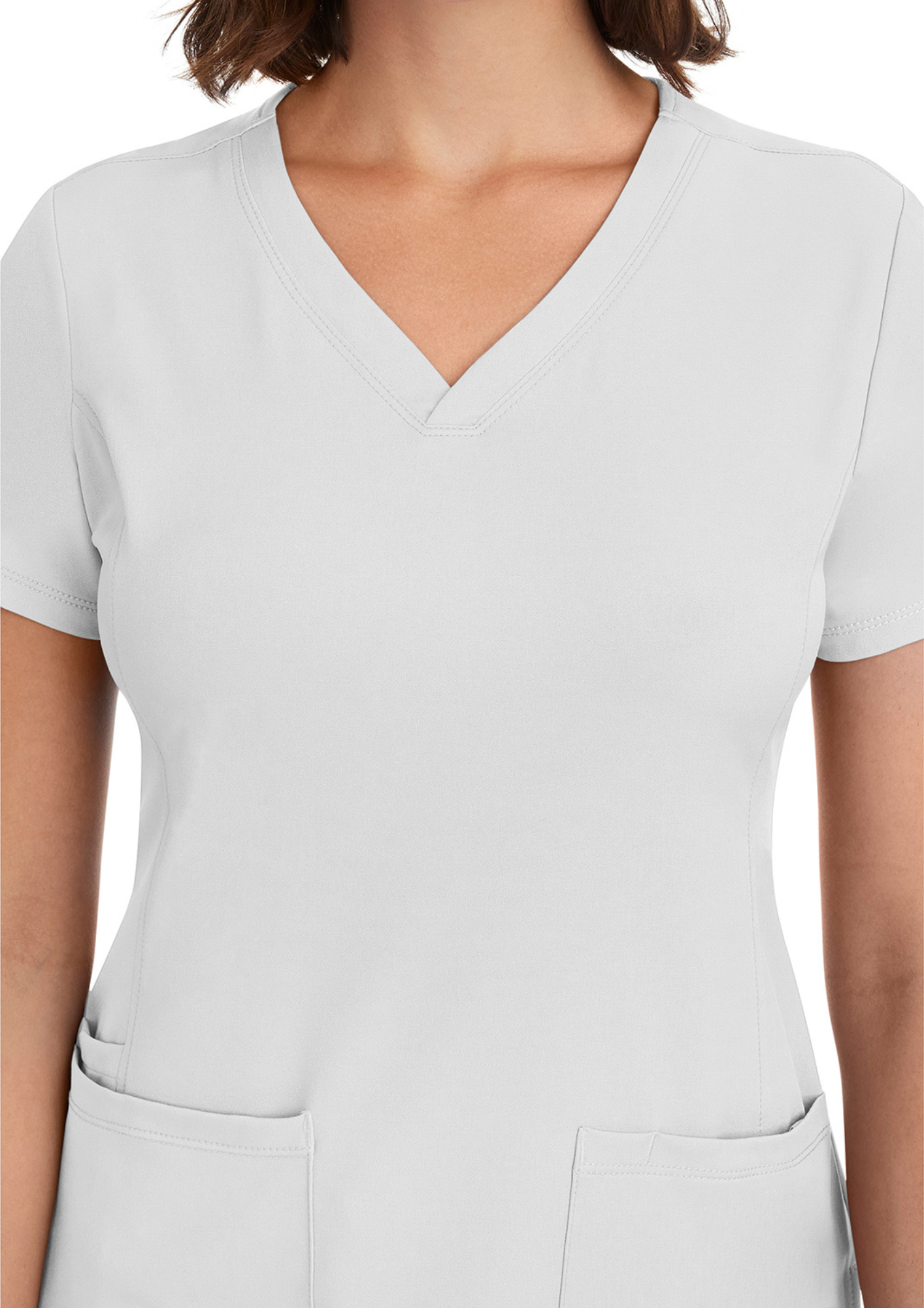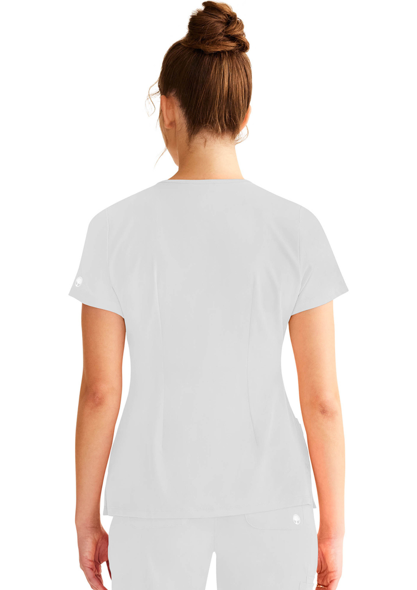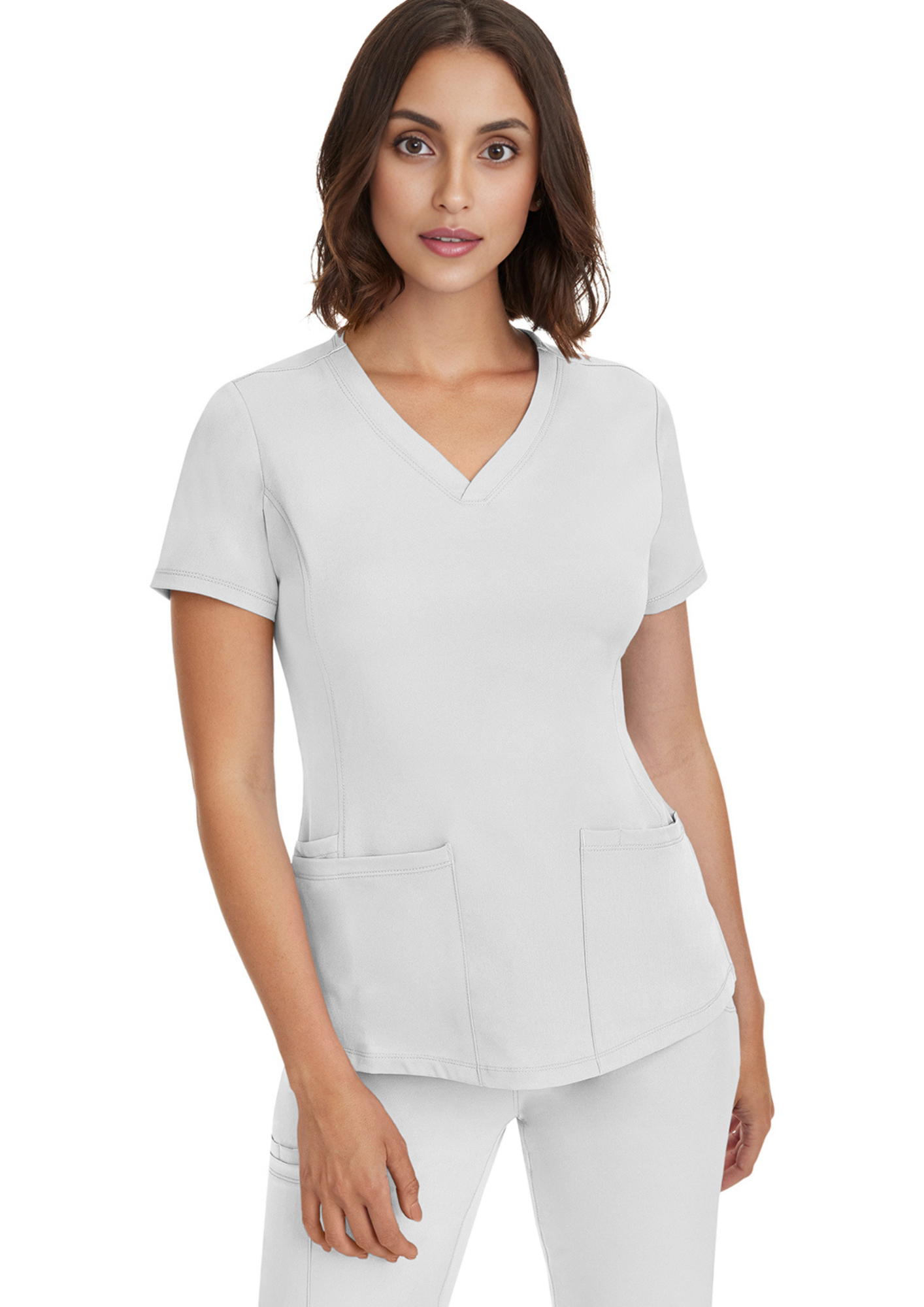 Esta blusa médica para mujer combina estilo y practicidad para acompañar a los profesionales de la salud en su día a día. Con su cuello en V atemporal, aberturas laterales y corte entallado, se adapta perfectamente a la silueta al tiempo que ofrece una gran libertad de movimiento.