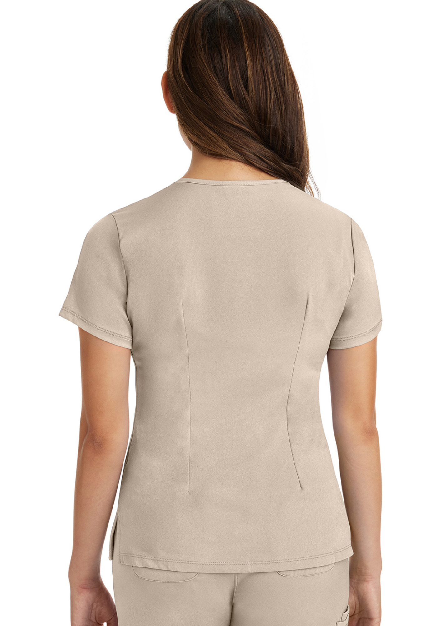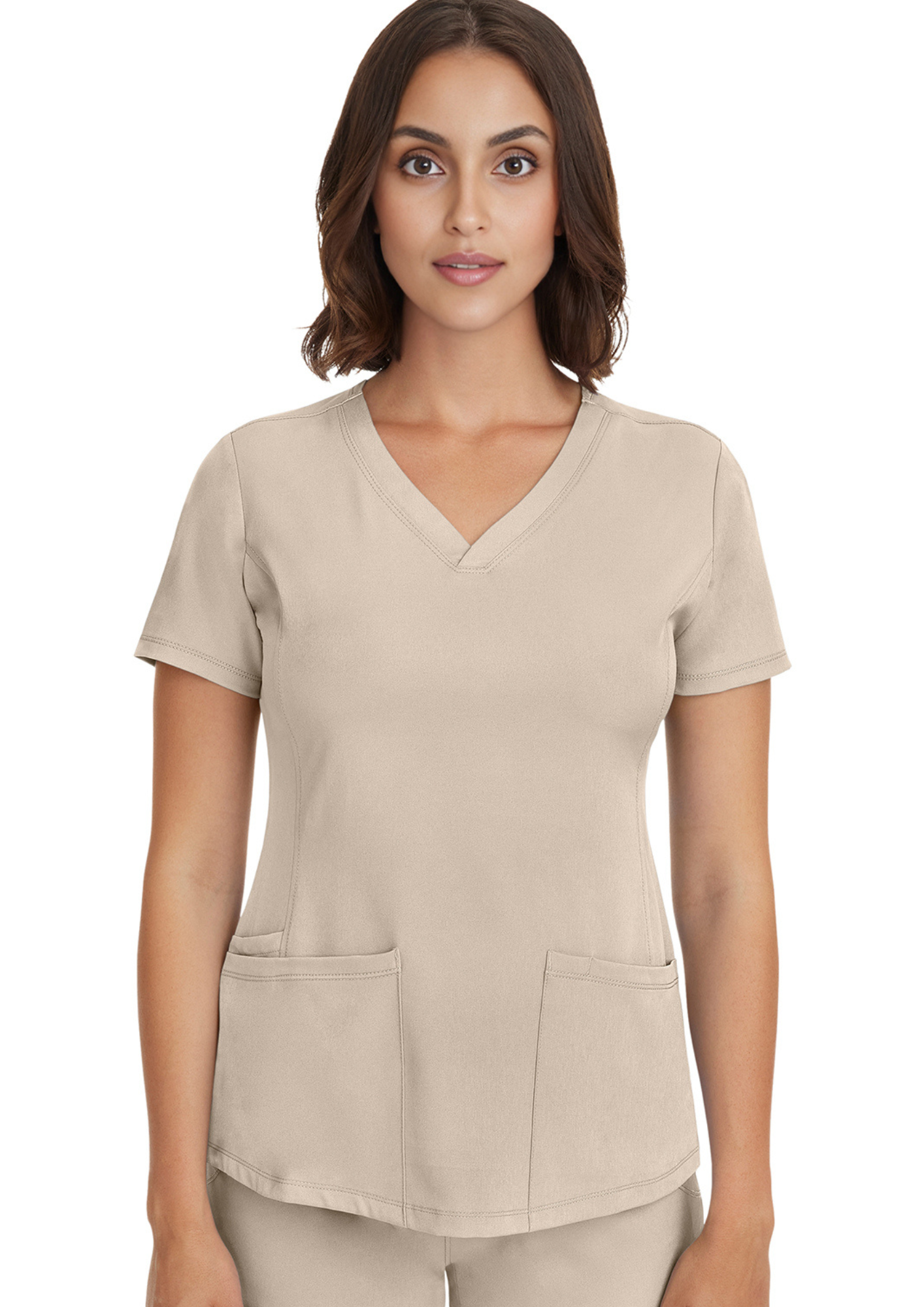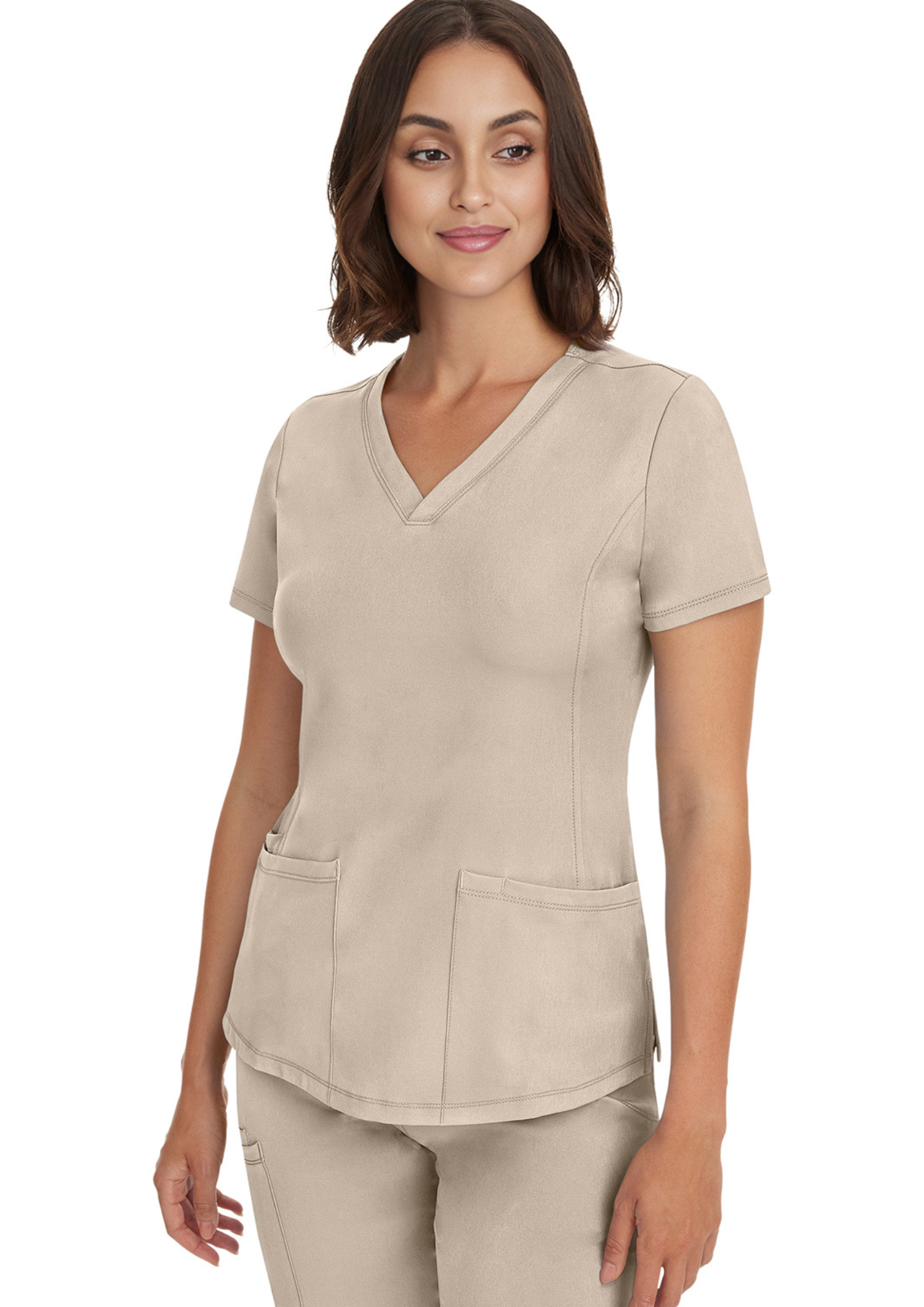 Esta blusa médica para mujer combina estilo y practicidad para acompañar a los profesionales de la salud en su día a día. Con su cuello en V atemporal, aberturas laterales y corte entallado, se adapta perfectamente a la silueta al tiempo que ofrece una gran libertad de movimiento.