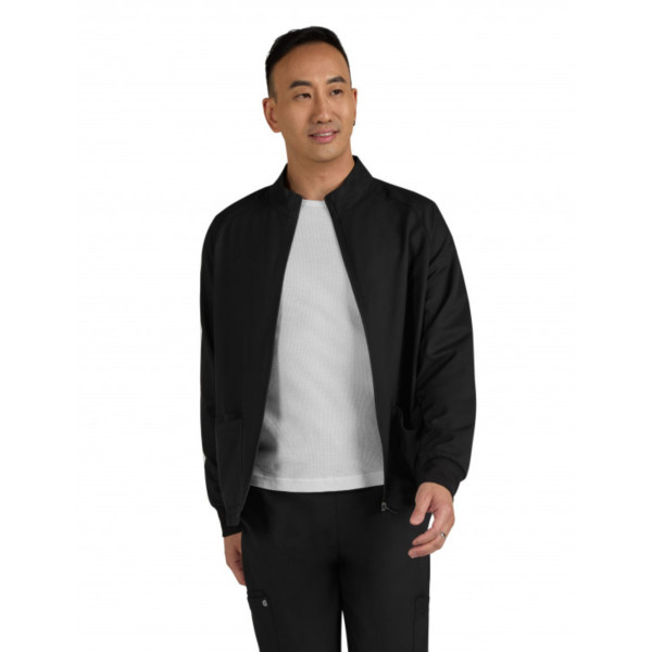 Esta chaqueta médica con cuello alto, corte entallado y múltiples detalles se adapta perfectamente a todas las profesiones médicas: dentista, enfermera, fisioterapeuta, veterinario... Su material ultra suave garantiza el máximo confort. Corte : Mujer, entallado Longitud : aproximadamente 77 cm Detalles : - 2 bolsillos delanteros y 3 ranuras para bolígrafos - cremallera en la parte delantera - puños de canalé en las mangas