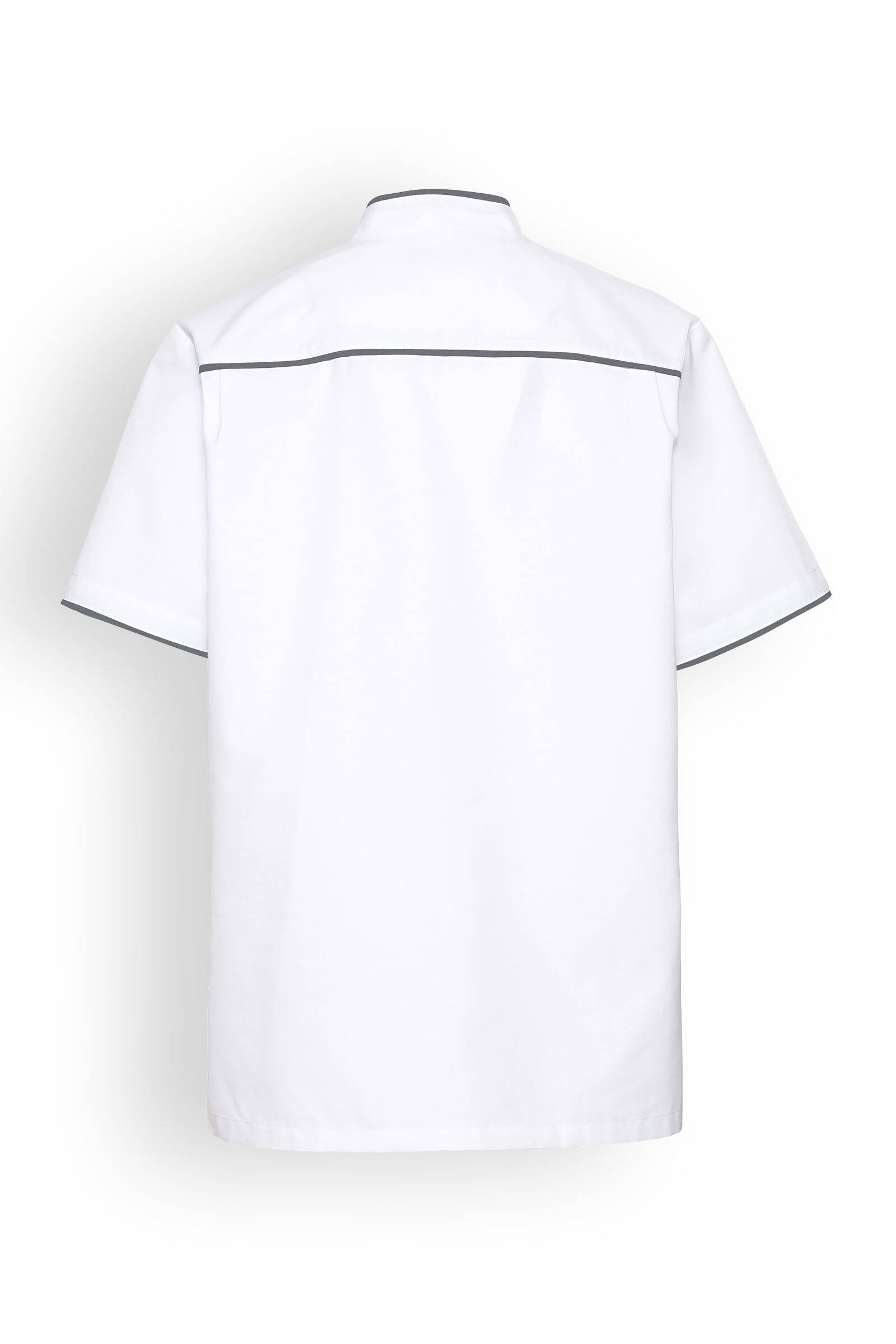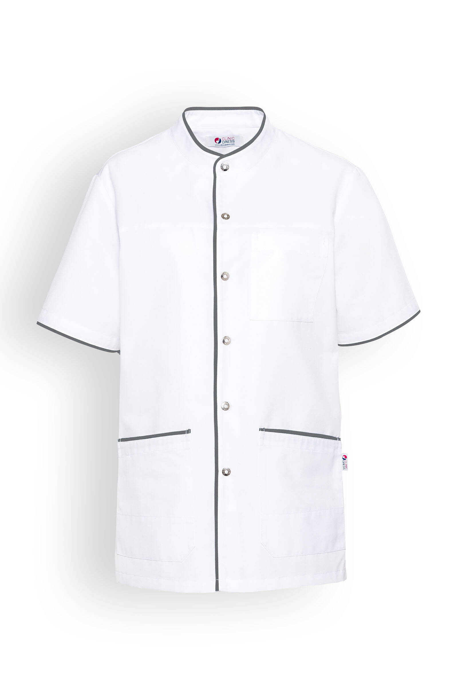 Blusa unisex, cuello recto, cierre a presión.