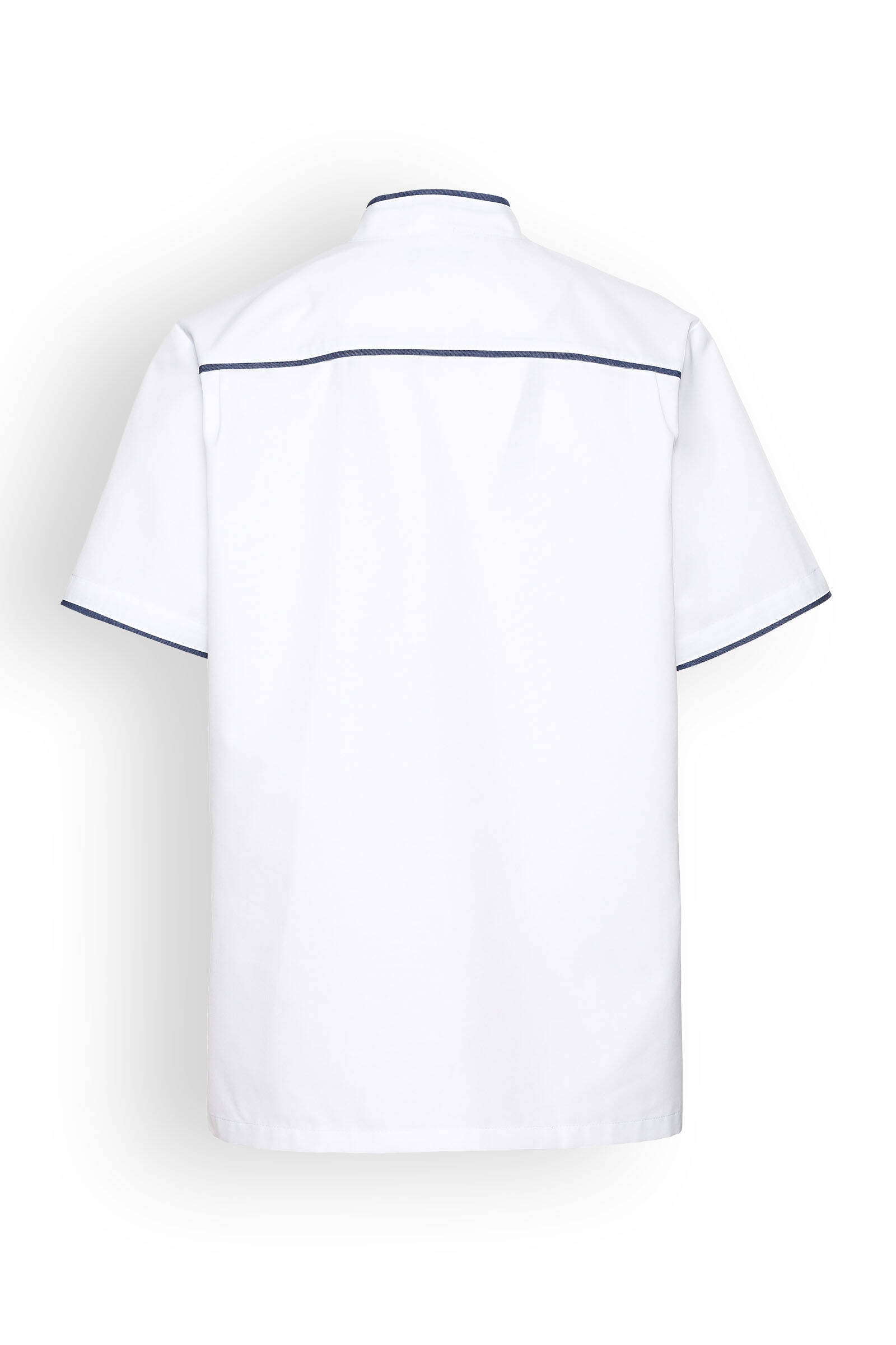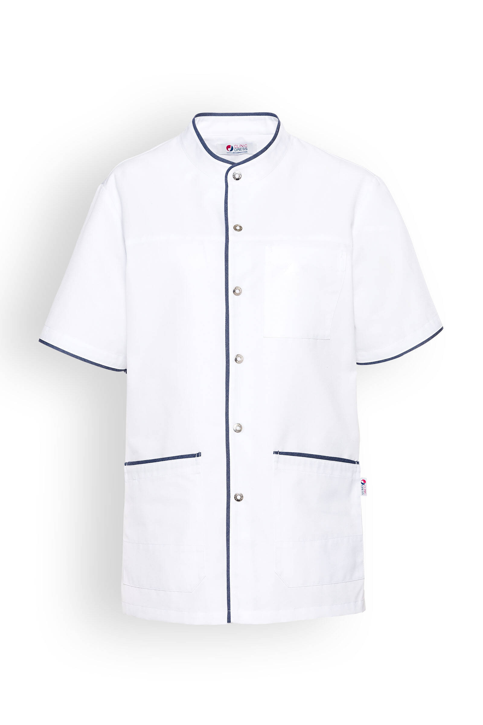 Blusa unisex, cuello recto, cierre a presión.