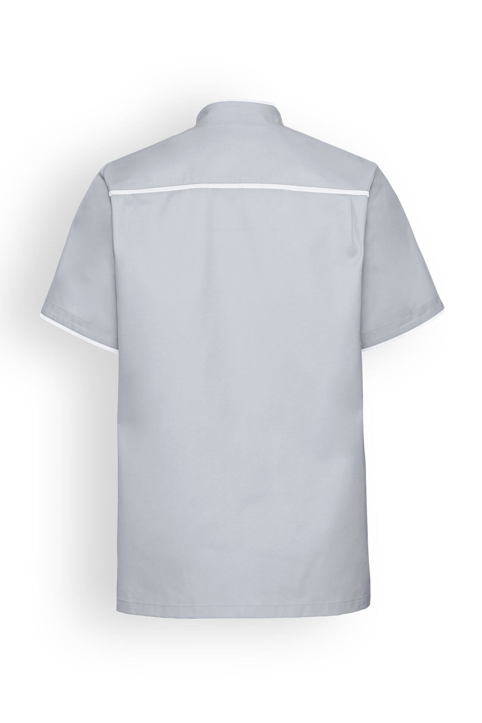 Blusa unisex, cuello recto, cierre a presión.