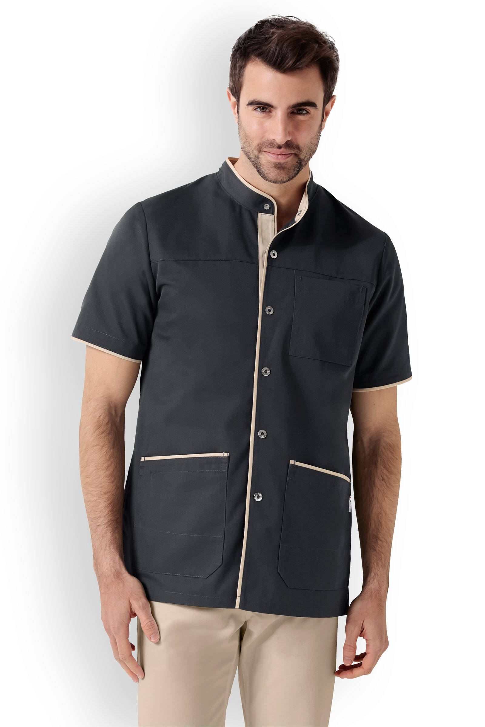 2 bolsillos de parche reforzados, correa para llavero en el bolsillo derecho, aberturas laterales.
