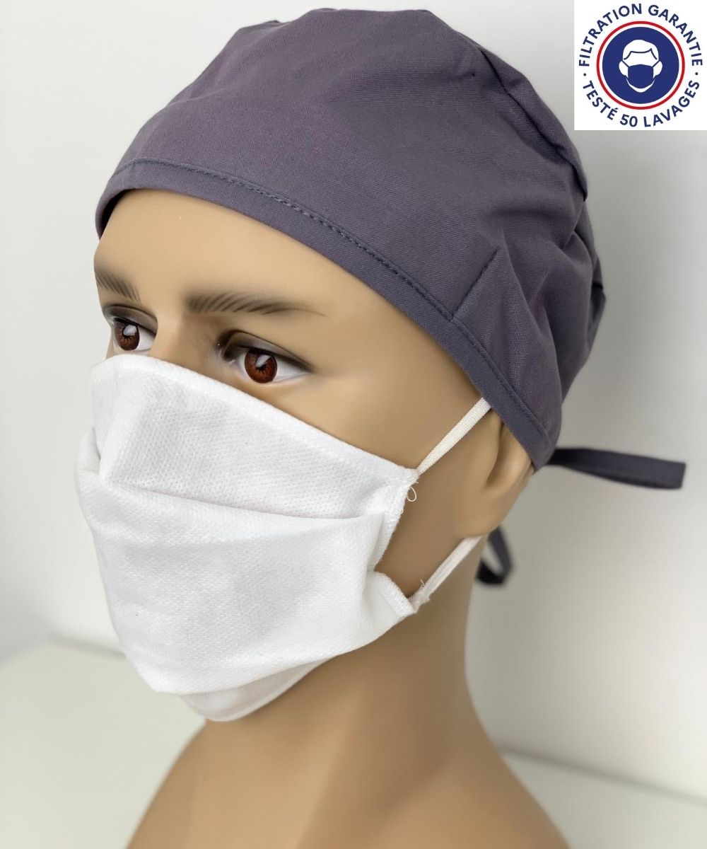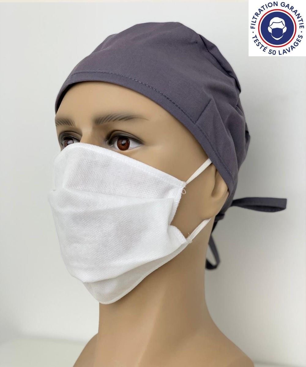 Equipado con 4 capas de tela para filtrar las proyecciones (recomendación de la AFNOR)