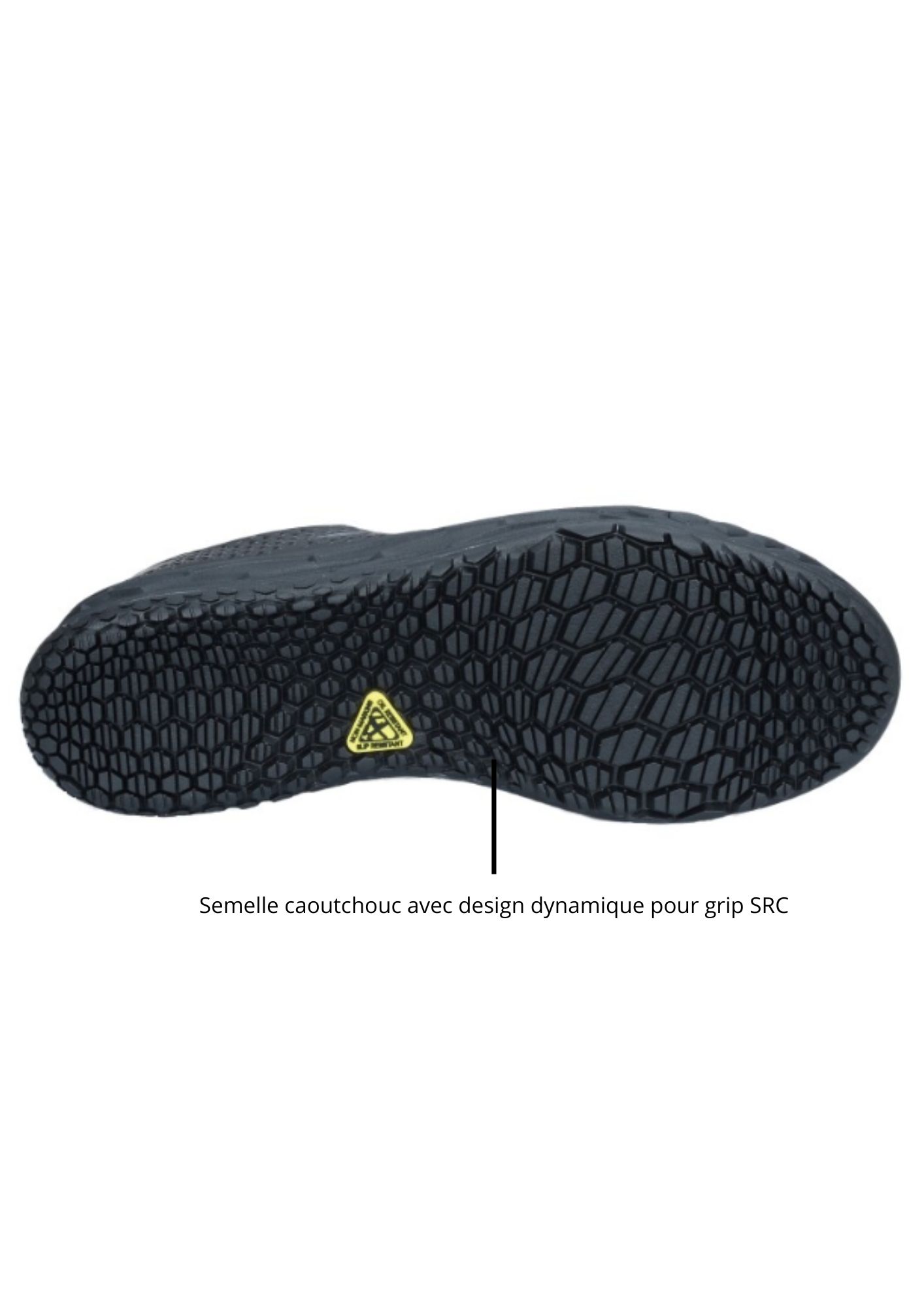 Semelle extérieure caoutchouc collée avec design dynamique pour un grip optimal sur tous les sols, résistante à la chaleur jusqu’à 300°C