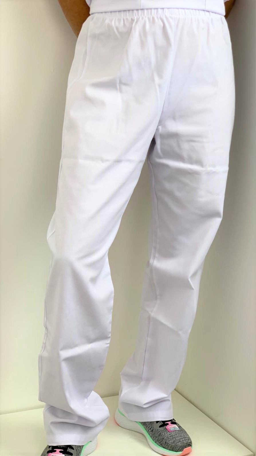 Estos pantalones médicos blancos son un modelo mixto para hombres y mujeres